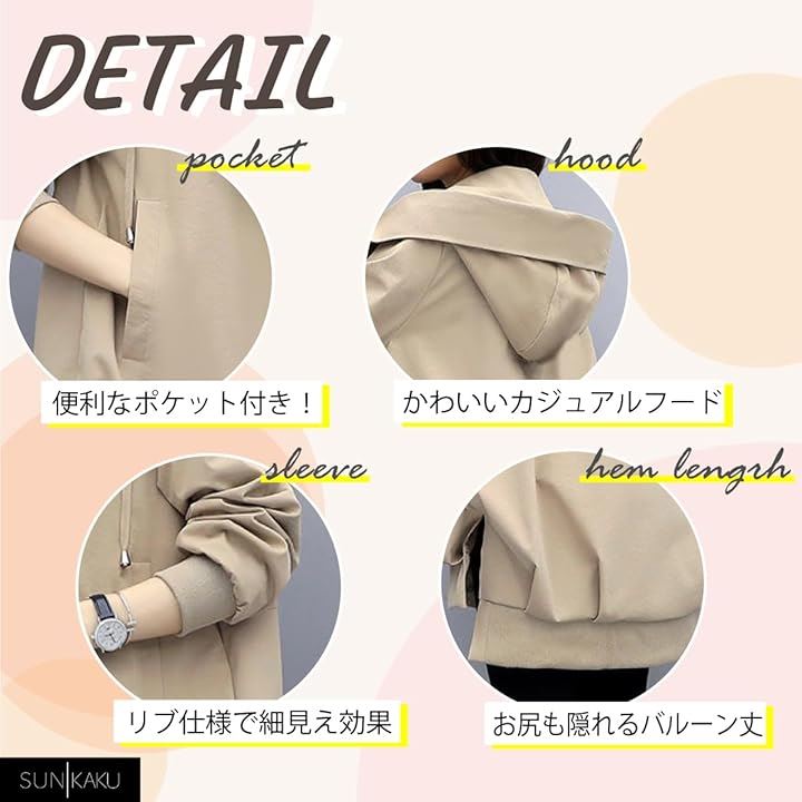 トレンチコート きれいめコート 軽いコート パーカーコート パーカージャケット カジュアルコート ボックスシルエット ゆったり マタニティアウター ママコーデ おしゃれ 入園式 入学式 卒園 卒業