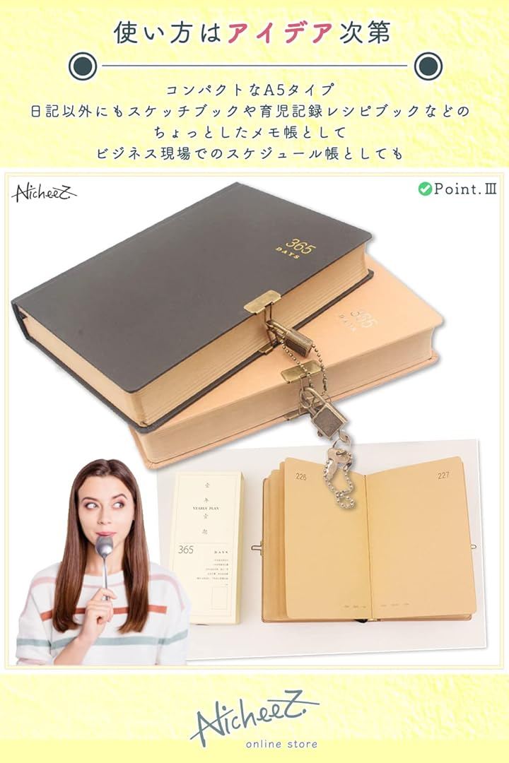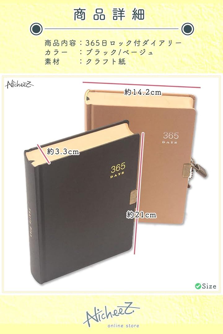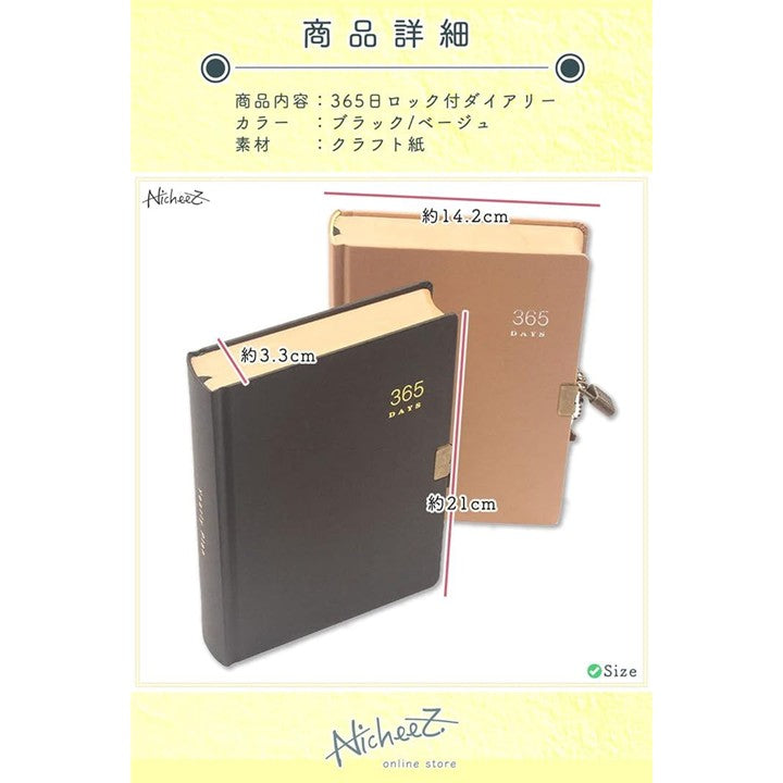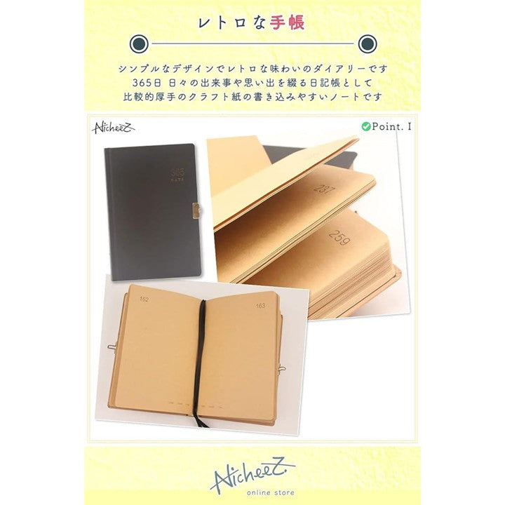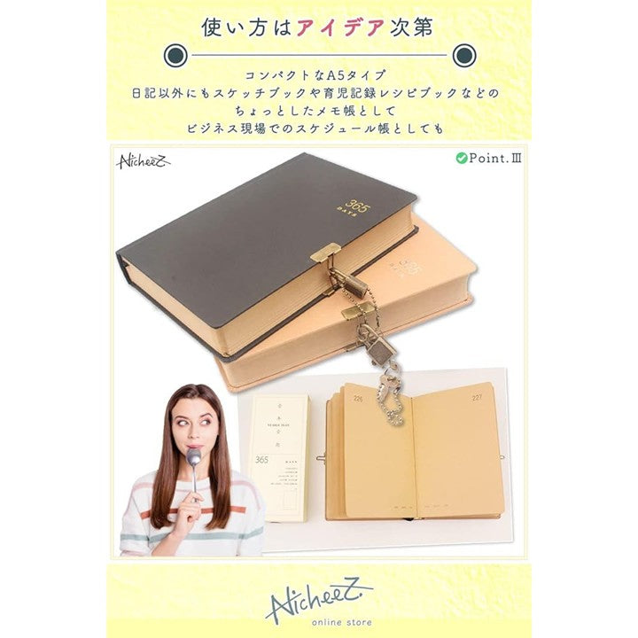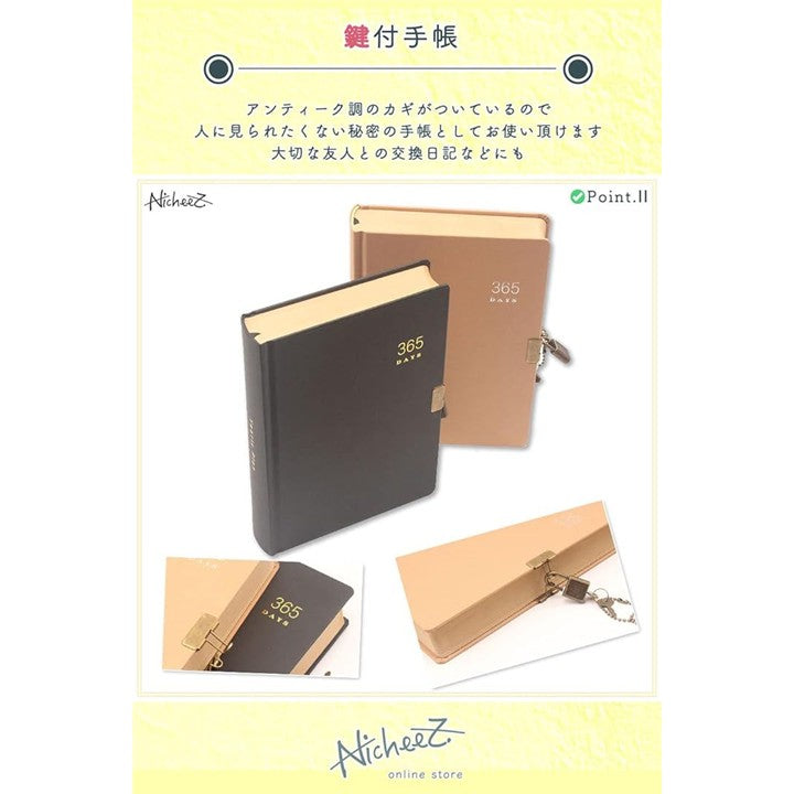 鍵付き ダイアリー 365日 日記帳 アンティーク調