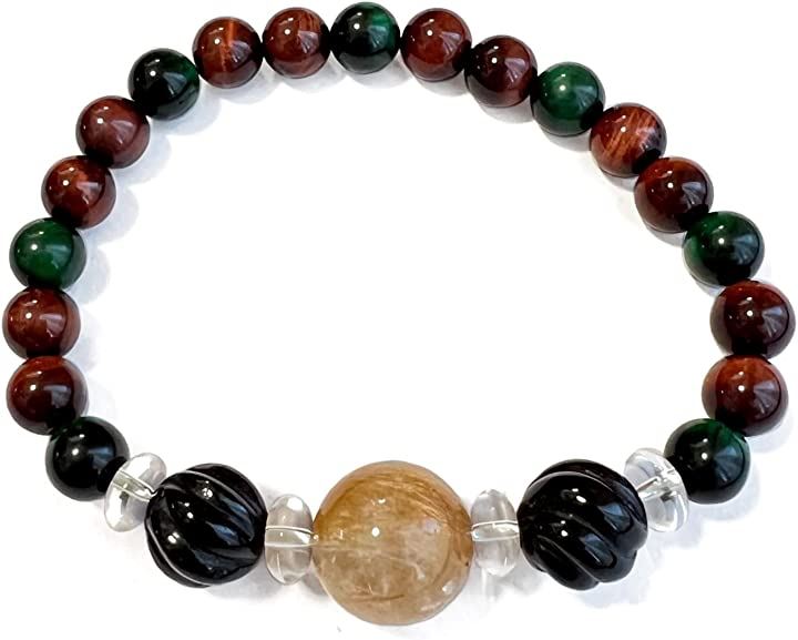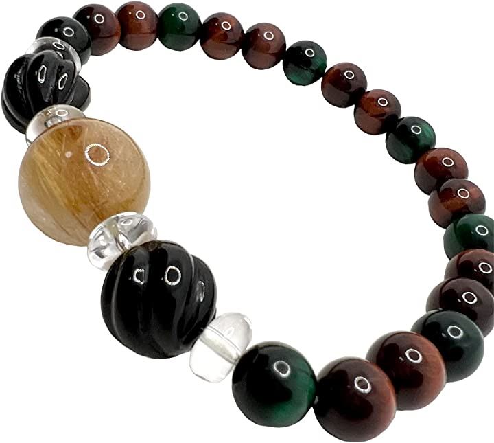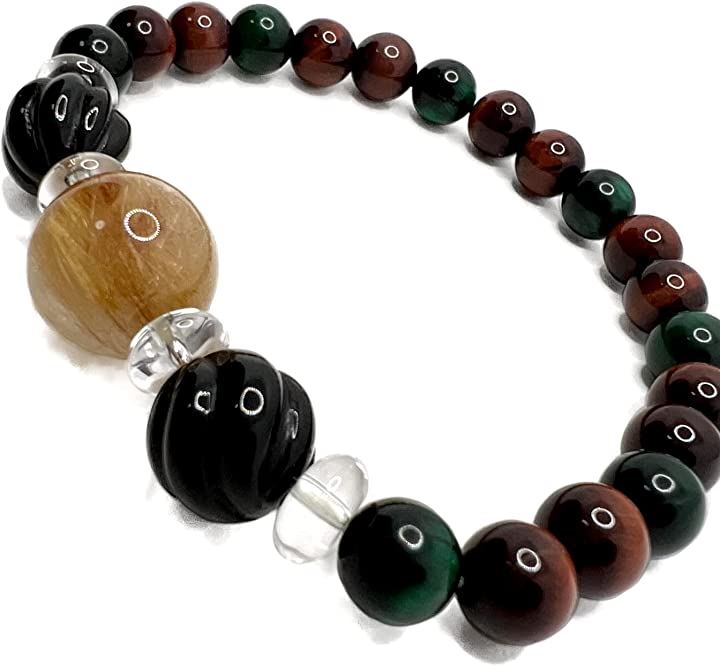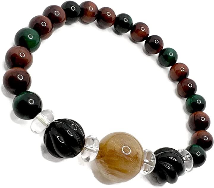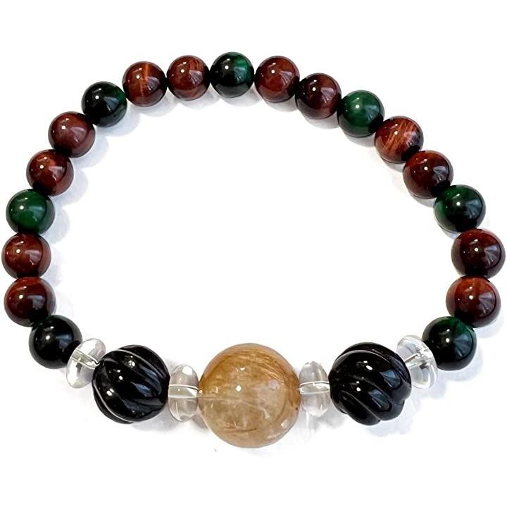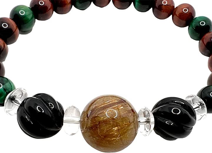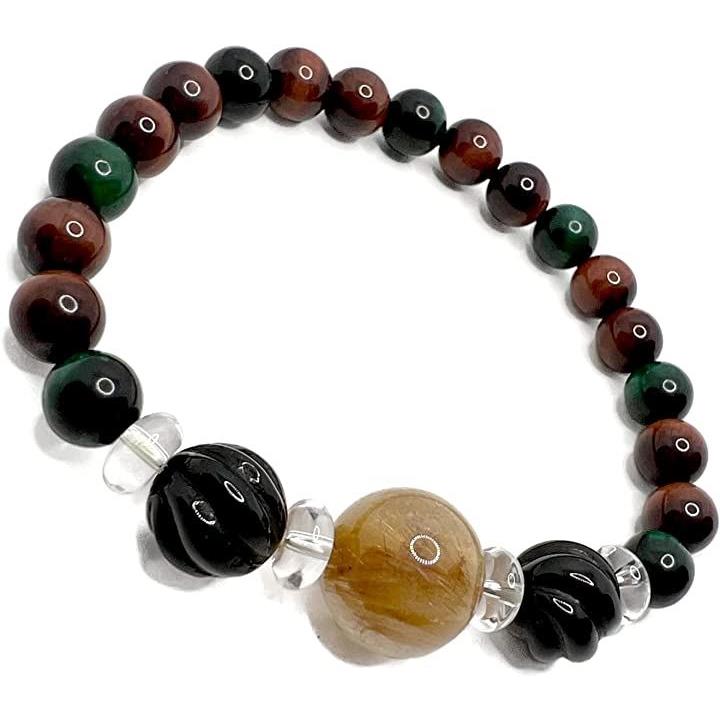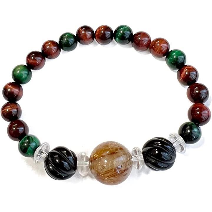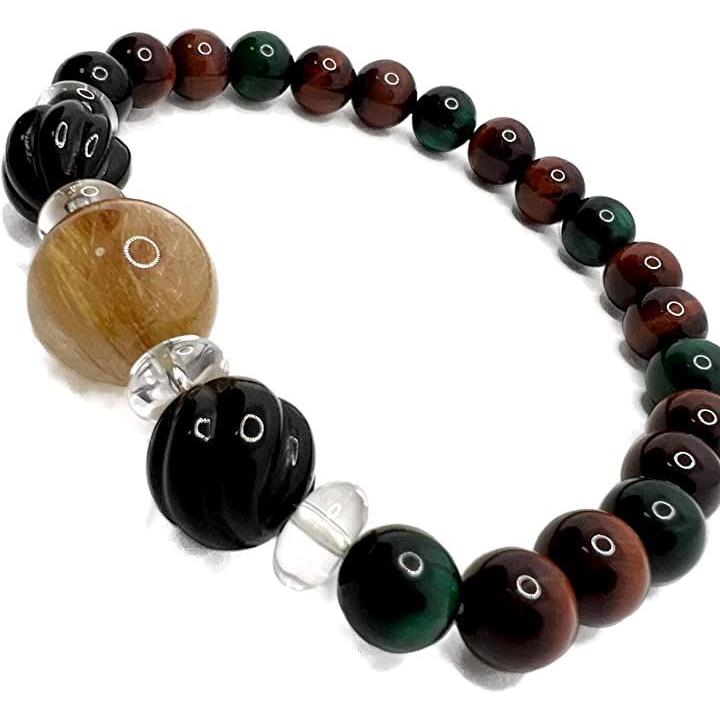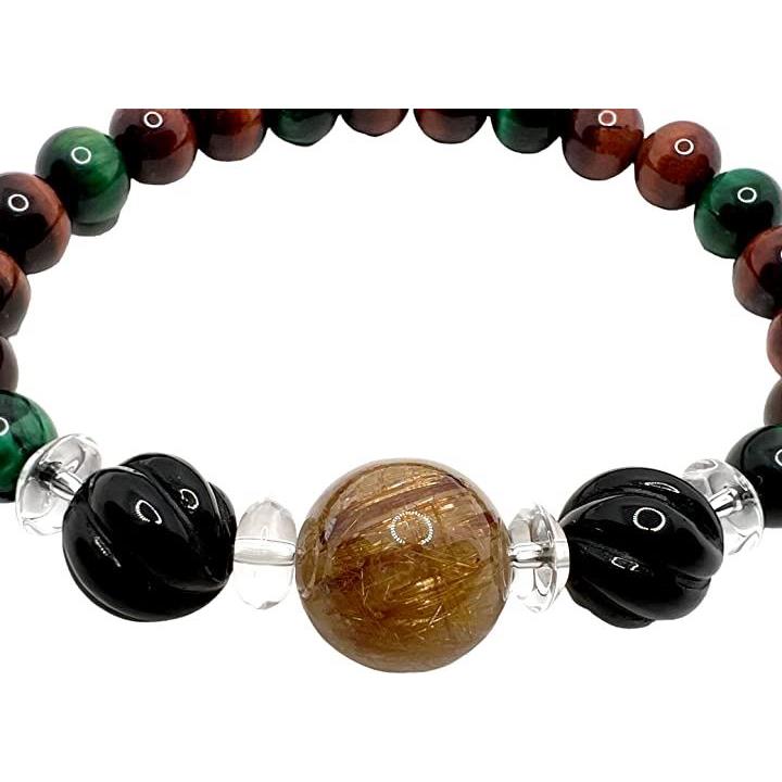 天然石 タイガーアイ オニキス 水晶 14mmルチルクオーツ 男女兼用 tiger-br5