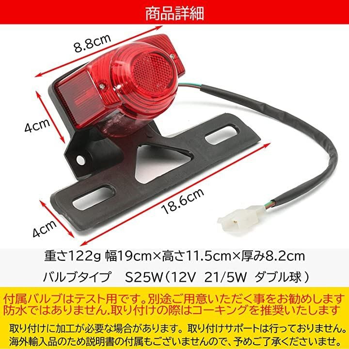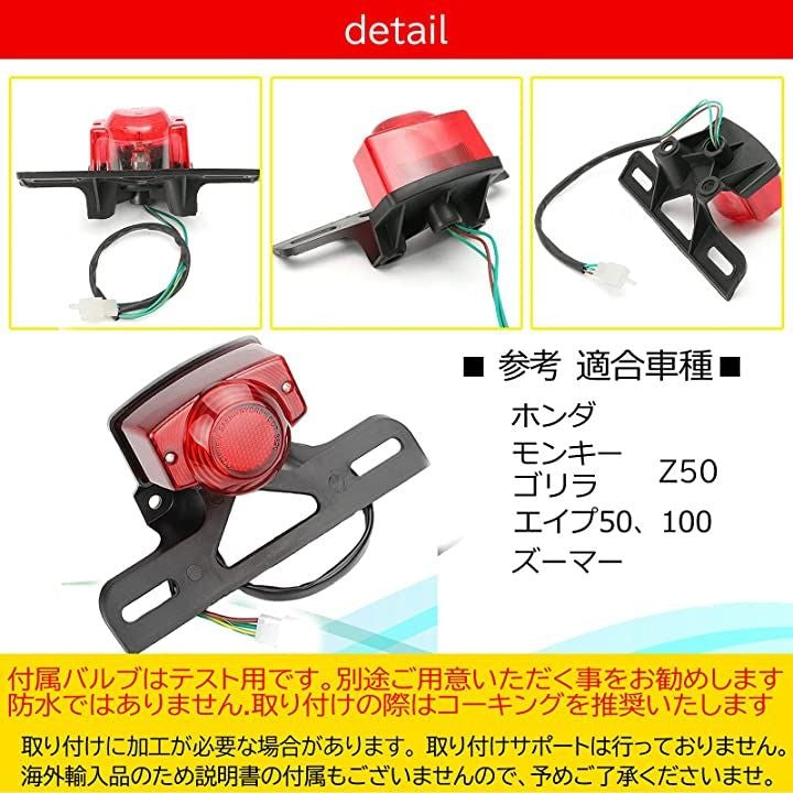 h&b 汎用 バイク テール ランプ ユニット ホンダ モンキー ゴリラ Z50 エイプ 旧車 パーツ ドレスアップ リア 樹脂レンズ ライト 赤