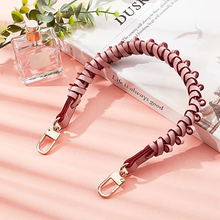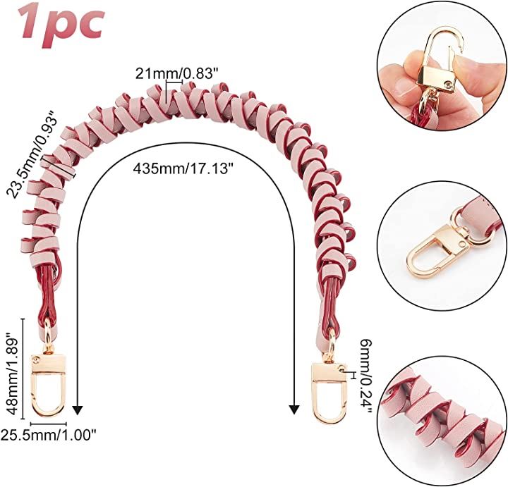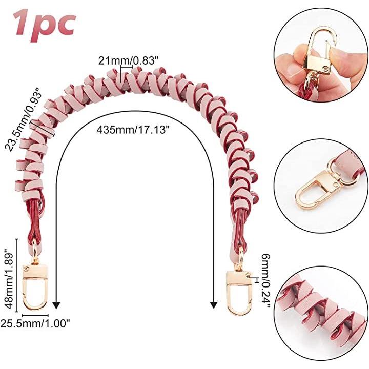 PandaHall バッグ 持ち手 PUレザー 着脱式 ナスカンホック式 バッグ修理用 ショート 取っ手 長さ約43cm ピンク