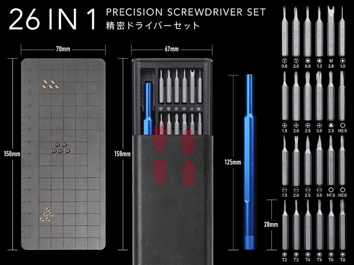 精密ドライバー セット 26in1 マグネットシートでネジ散乱防止 トルクス