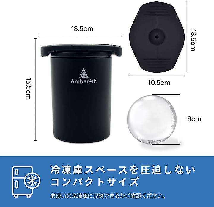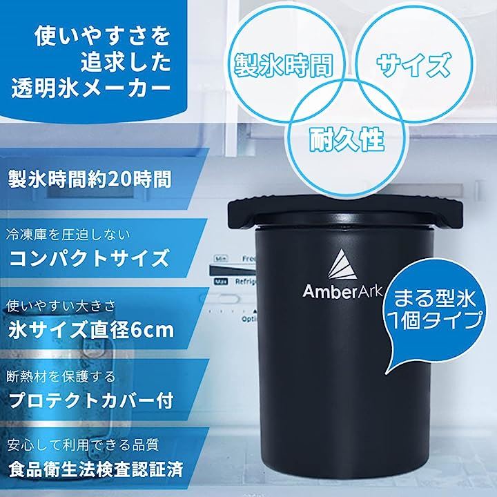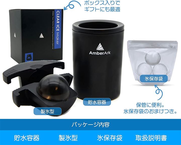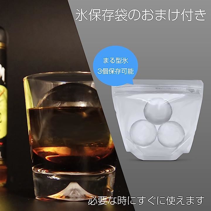 クリスタルアイスメーカー 透明氷製氷 コンパクトサイズ 丸型氷1個 20時間製氷 氷保存袋付