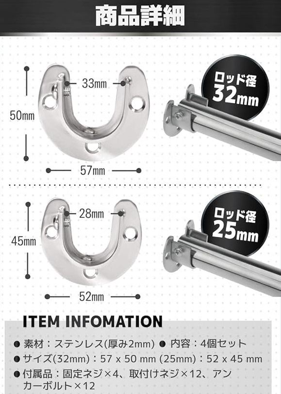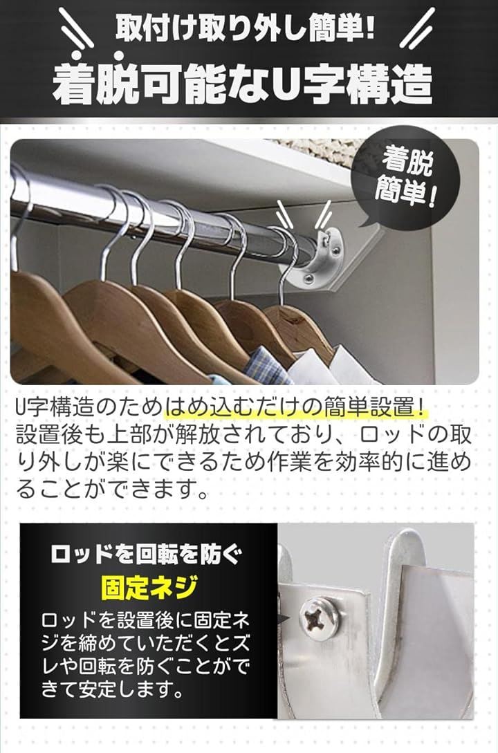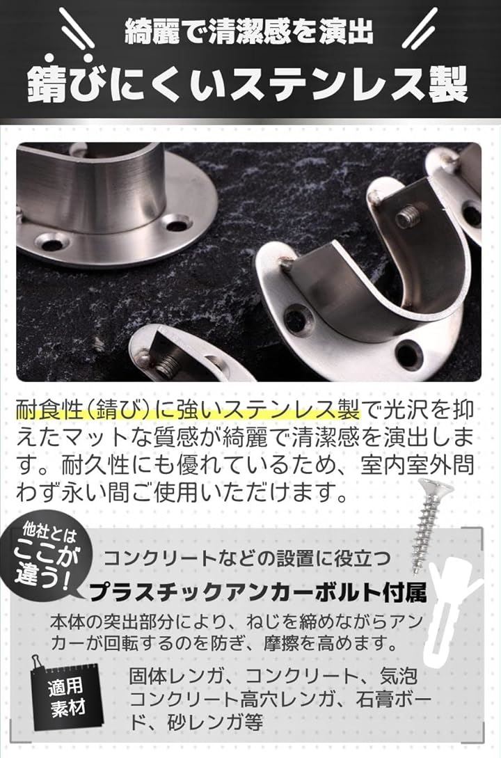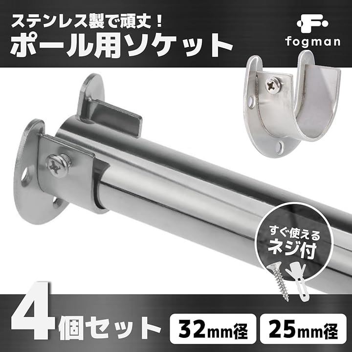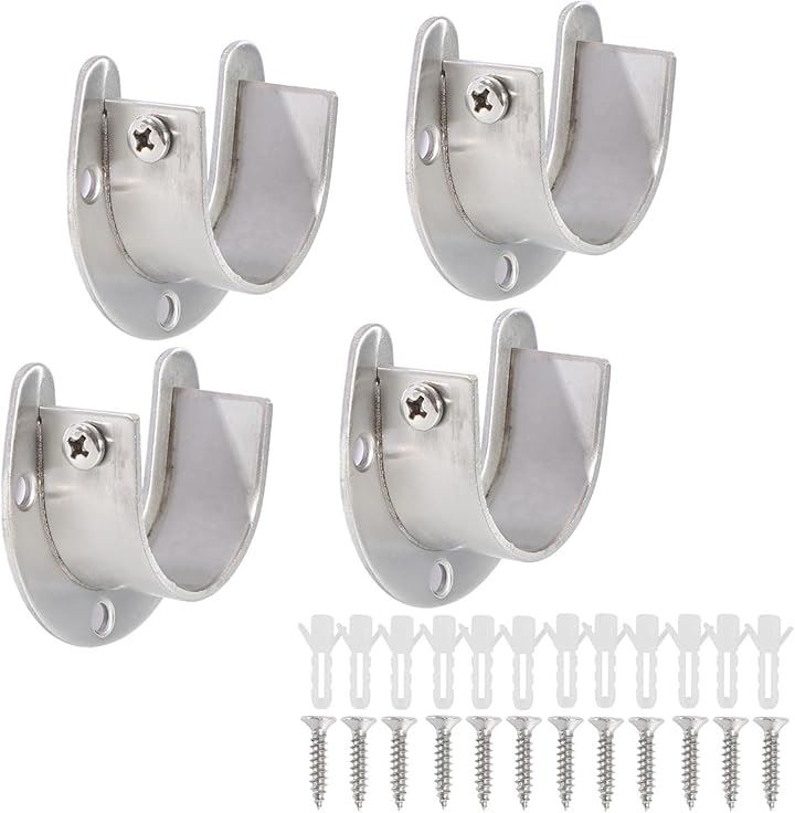 ポール 固定 金具 クローゼット U字 ソケット ステンレス ネジ付き 4個セット