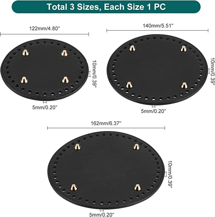 バック用底板 バッグボトム 円底 3枚セット 編みバッグ ハンドメイド 底釘付 12/14/16cm