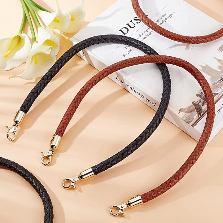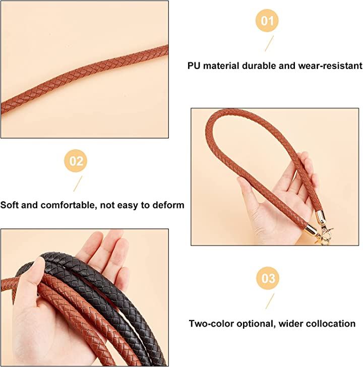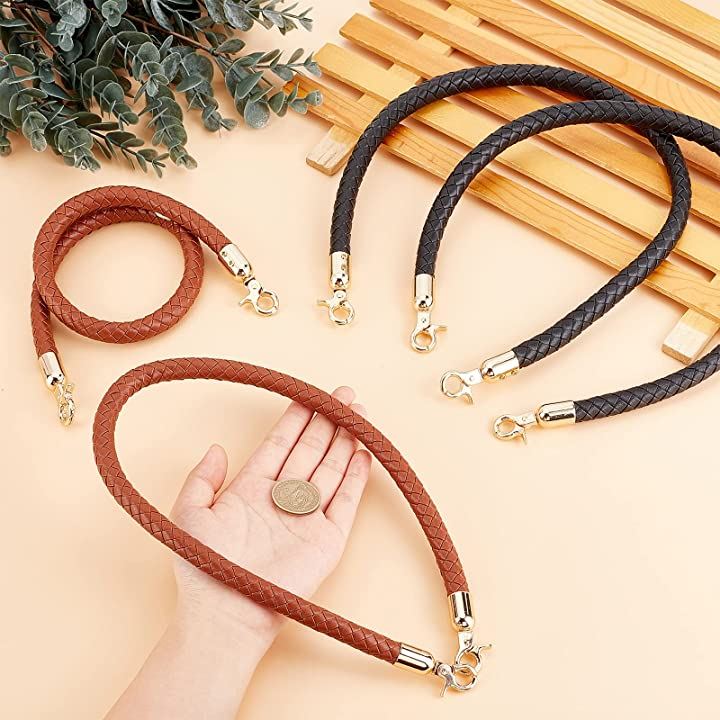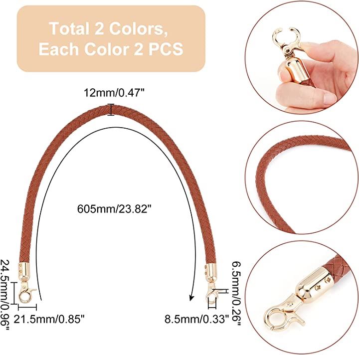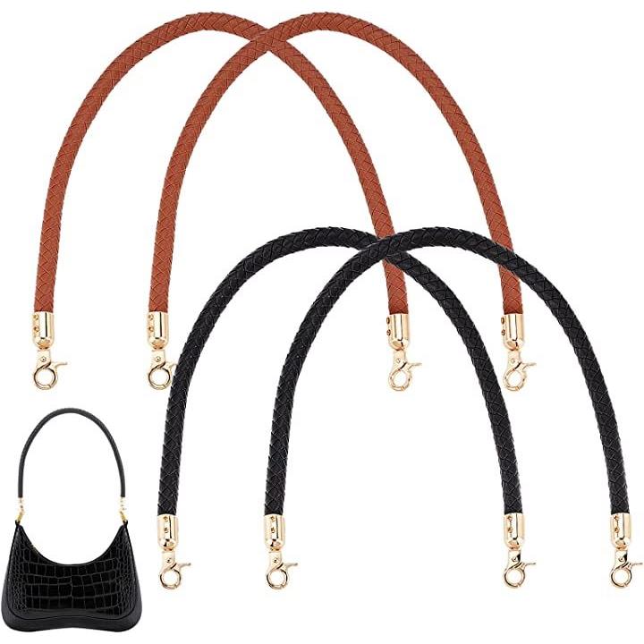 互換品PandaHall バックの持ち手 PU 合成皮革 ナスカン付き 4本セット 編みデザイン 60.5cm