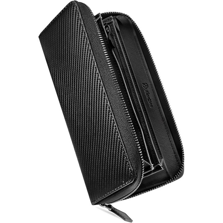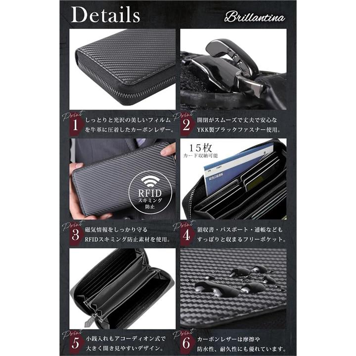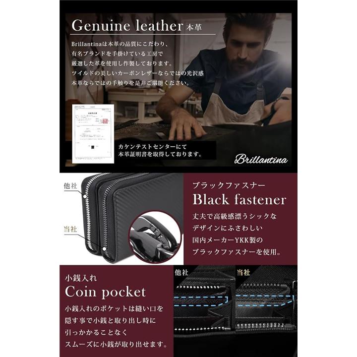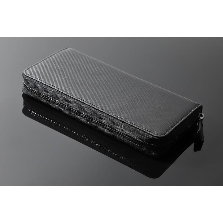 財布 メンズ 長財布 カーボンレザー スキミング防止 YKK製 ラウンドファスナー 大容量 小銭入れ付き