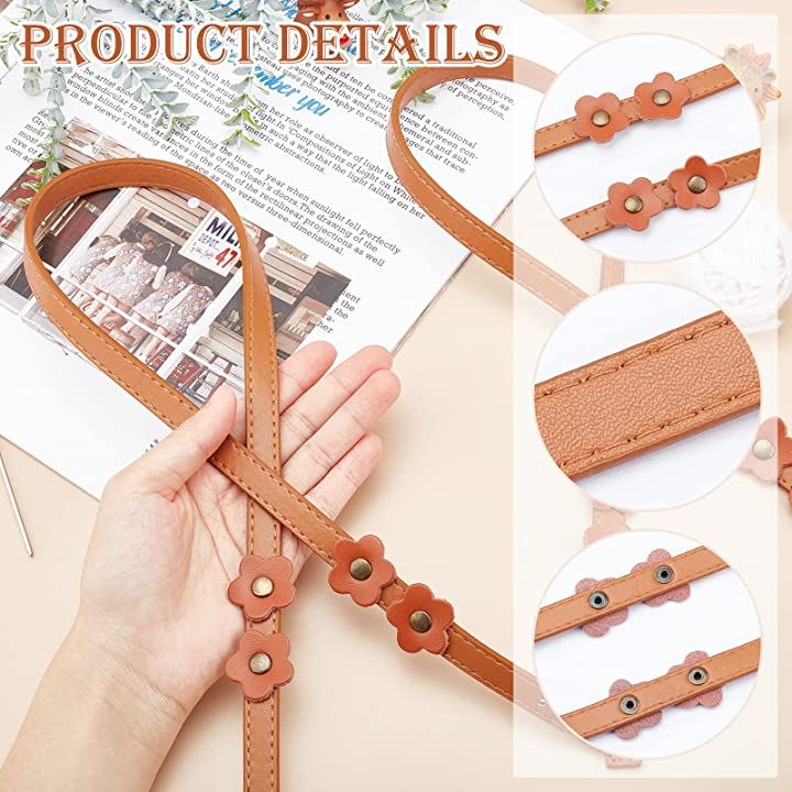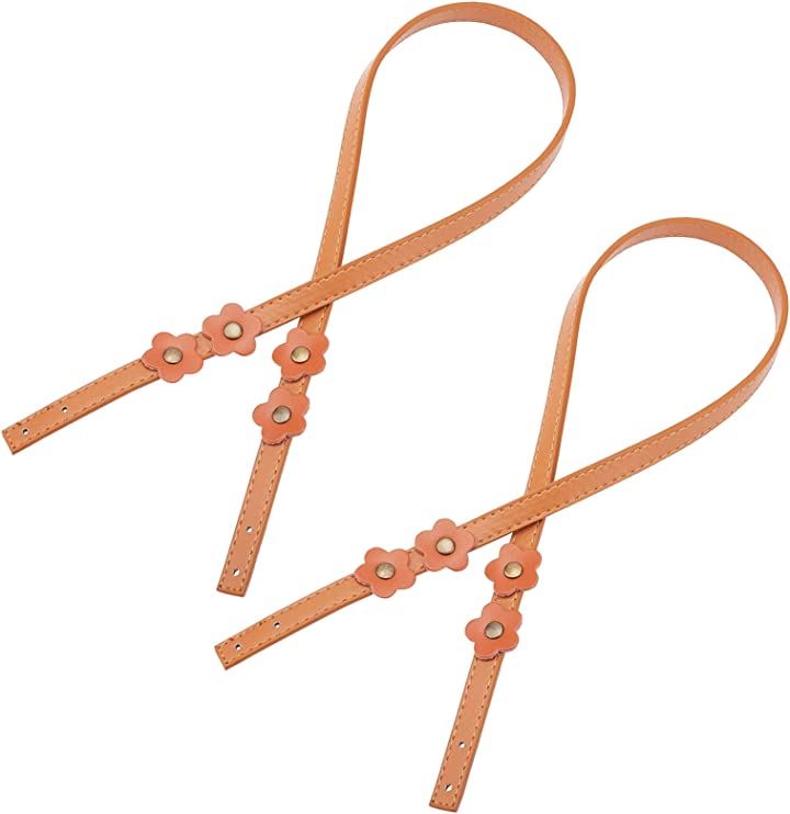 2本 革 ショルダーストラップハンドル フラワー 型 チェーン ベルトクロスボディバック 持ち手 穴付き 長 70cm