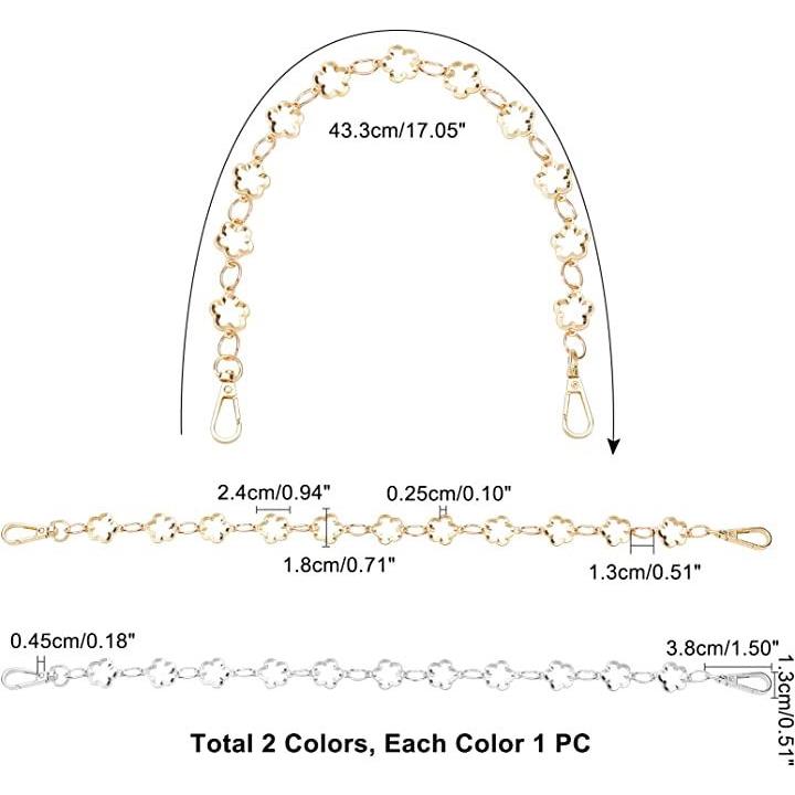 2色 金属製 財布チェーンストラップ 短いハンドバッグハンドルチェーン 交換用