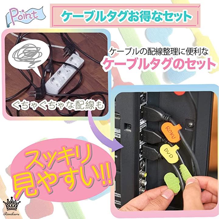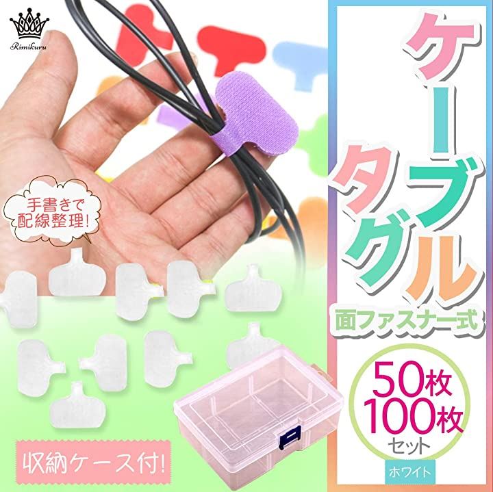 ケーブルタグ 面ファスナー式 セット ホワイト 配線整理 書ける 収納ケース付属