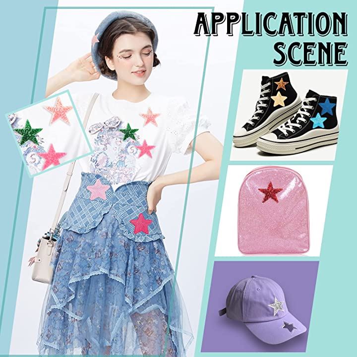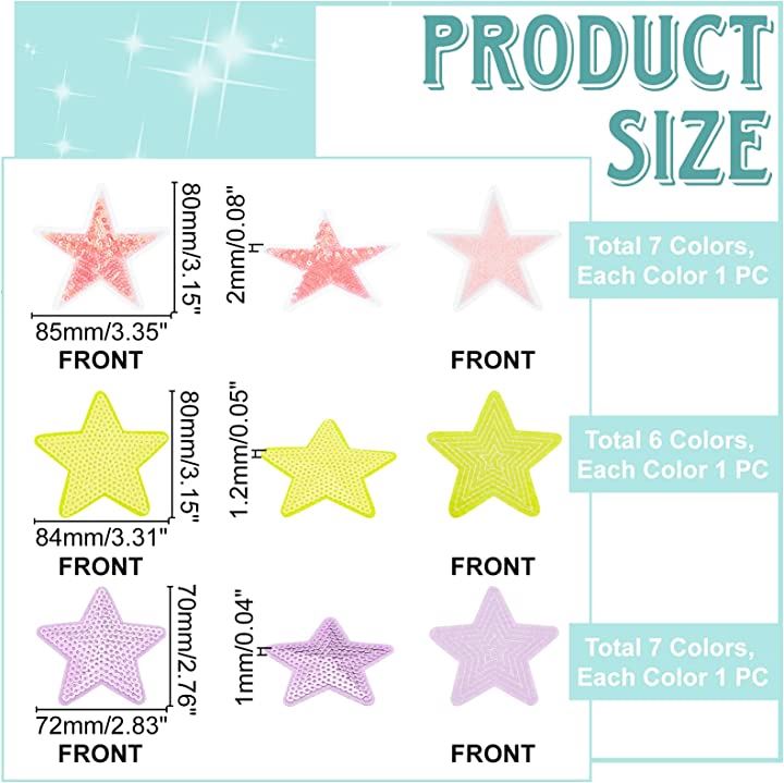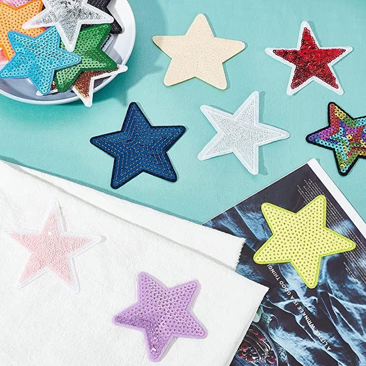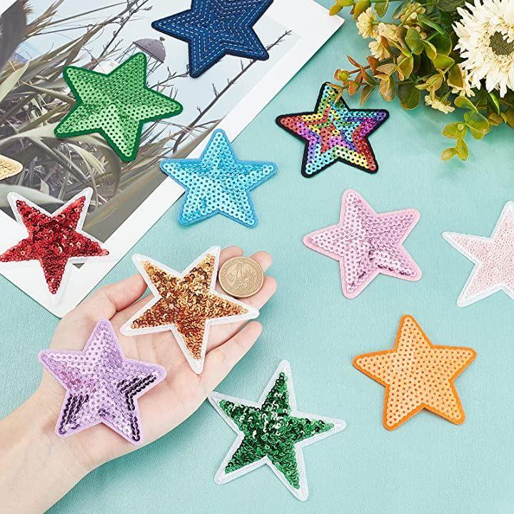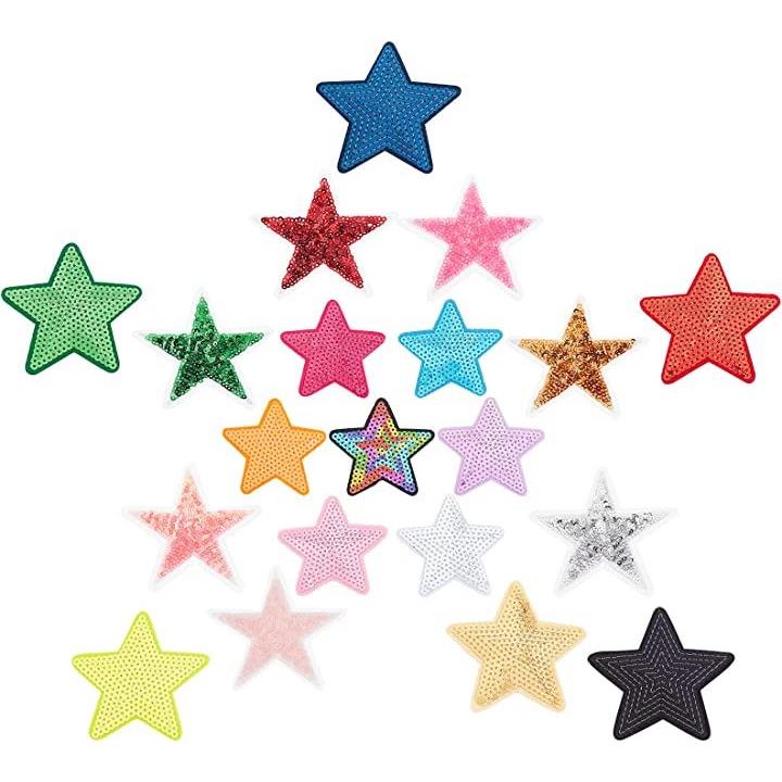 ワッペン アイロン キラキラ 星 スパンコールワッペン 刺繍ワッペン アップリケ 可愛い装飾 20枚セット 70mm 80mm