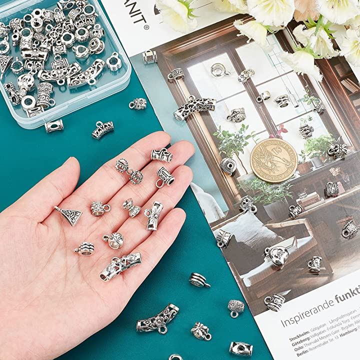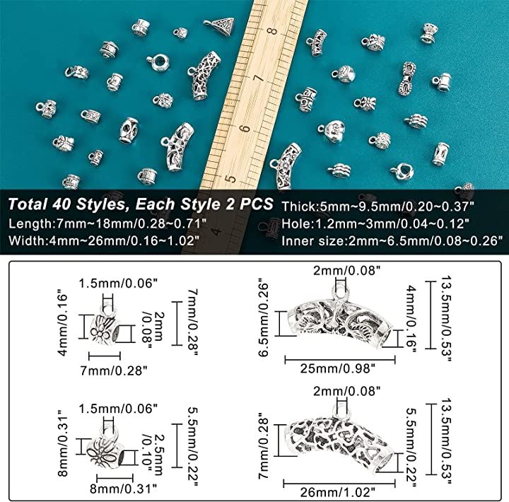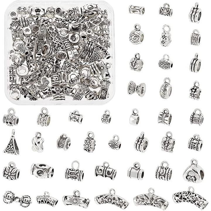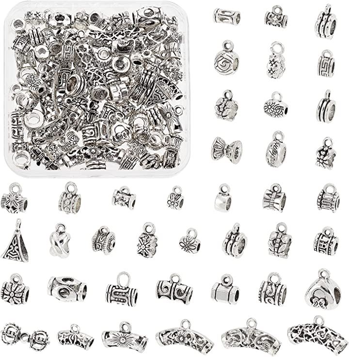 互換品 約80個/箱 管状ペンダント スペーサービーズ 40種 メタルビーズ カン付き