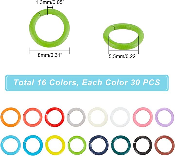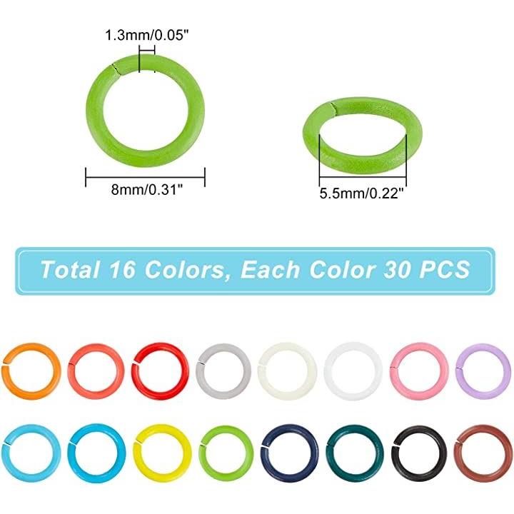 PandaHall 丸カン カラー 480個 16色 丸環 マルカン 8mm リング 基礎パーツ 金具セット