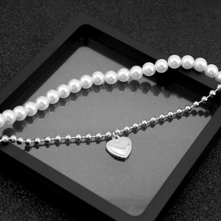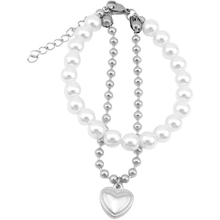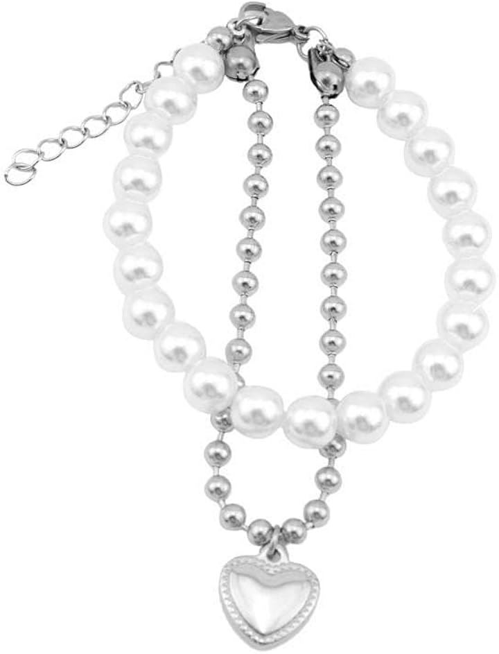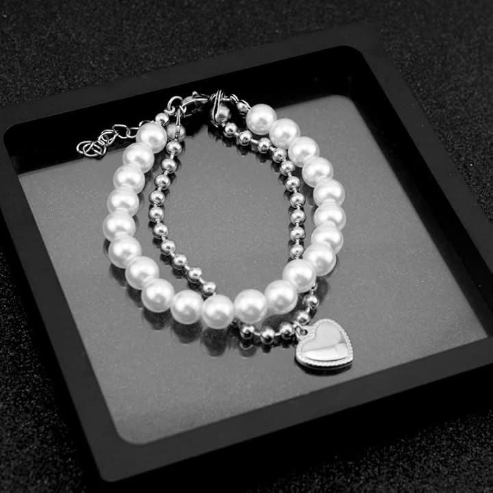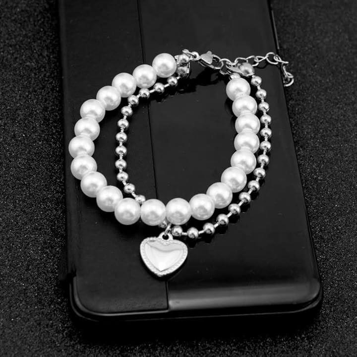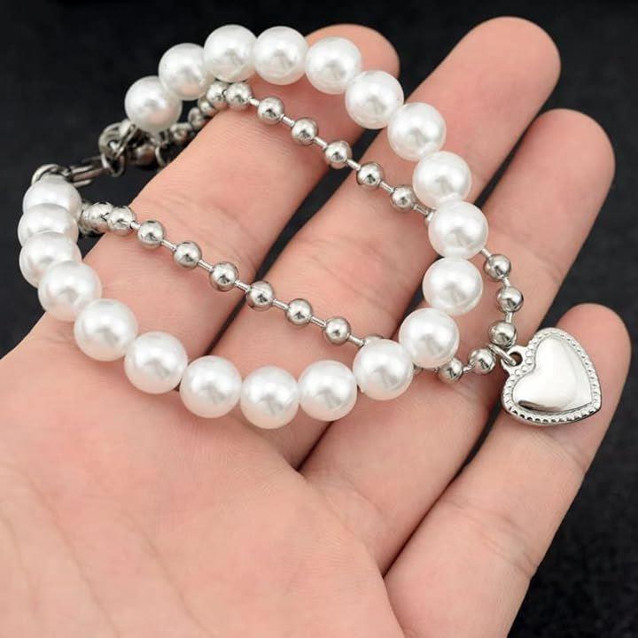 ブレスレット レディース 人気 パール ボールチェーン 重ね付け ハート チャーム お洒落 人工パール アクセサリー プレゼント ギフト 可愛い