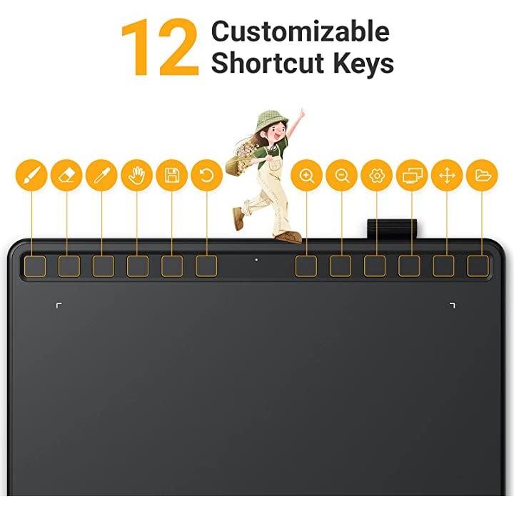 さらに、12個のカスタマイズされたショートカットキーは、ブラシ、消しゴム、ズームイン、ズームアウト、ハンドツール、Ctrl Z、Ctrl Vなどのニーズに応じて異なるショートカットの組み合わせにマッピングできます。