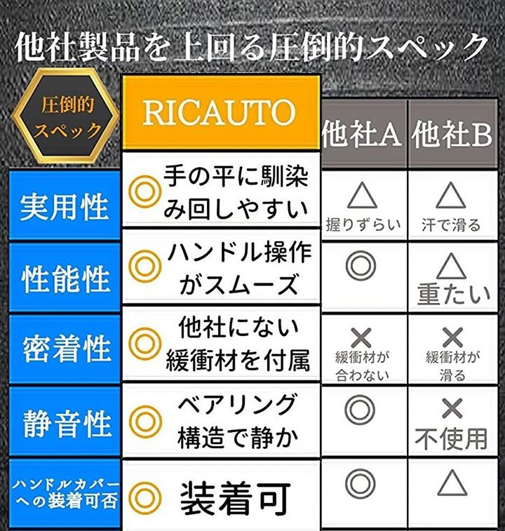また、ハンドルとの密着性を良くして欲しいとの声を頂き、RICAUTOオリジナルゴムで設計し、より多くの方にRICAUTO ハンドルスピンナー をご体感頂けるようにしました。