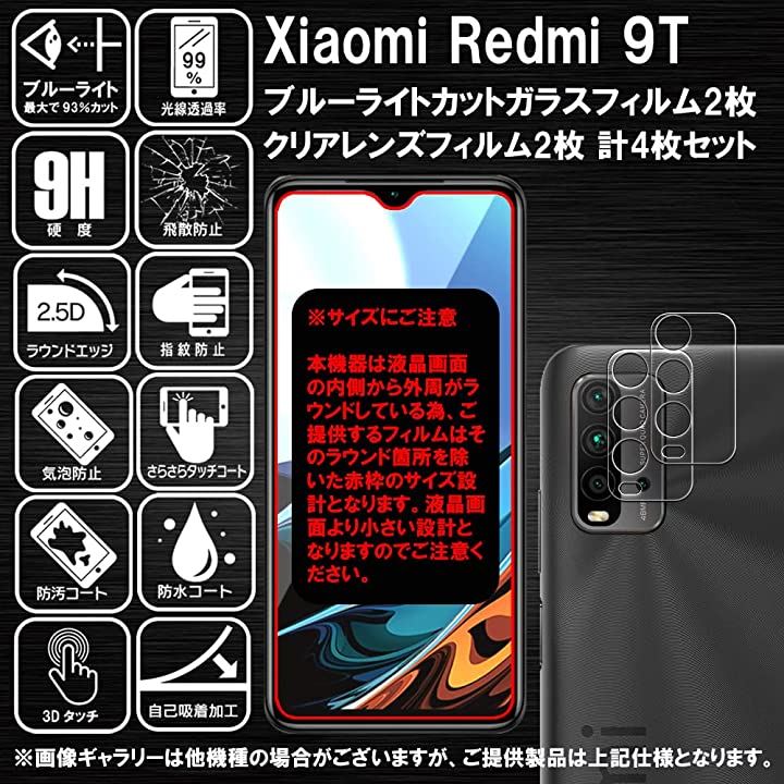 2枚+2枚 RISE ガラスフィルム カメラ レンズ Xiaomi Redmi 9T 用 保護フィルム