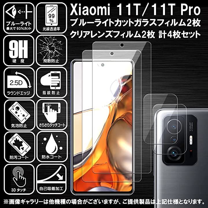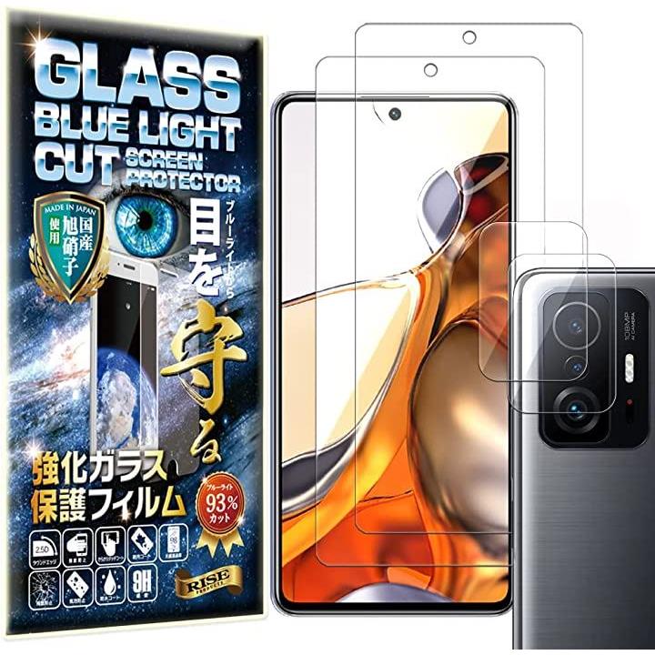 2枚+2枚 RISE ガラスフィルム カメラ レンズ フィルム ブルーライトカット 93% Xiaomi 11T/11T Pro 用 保護フィルム |