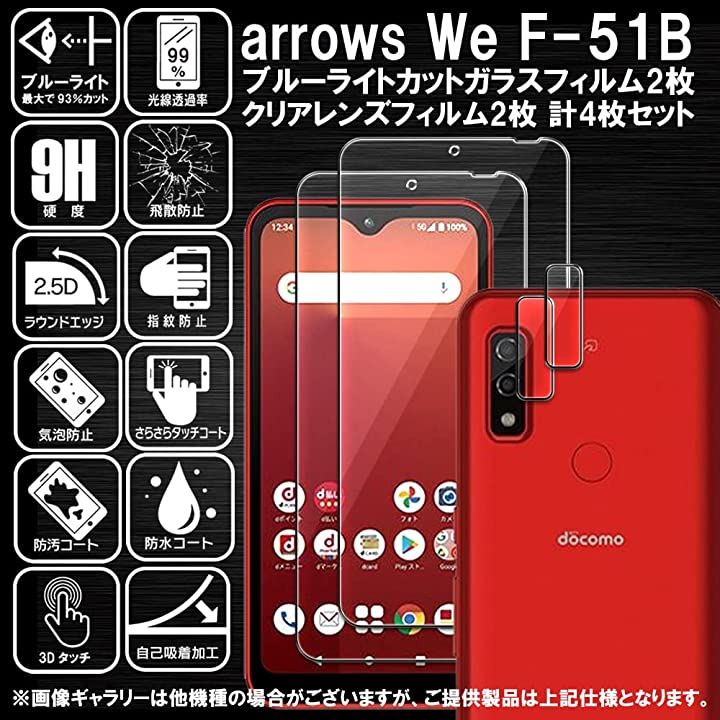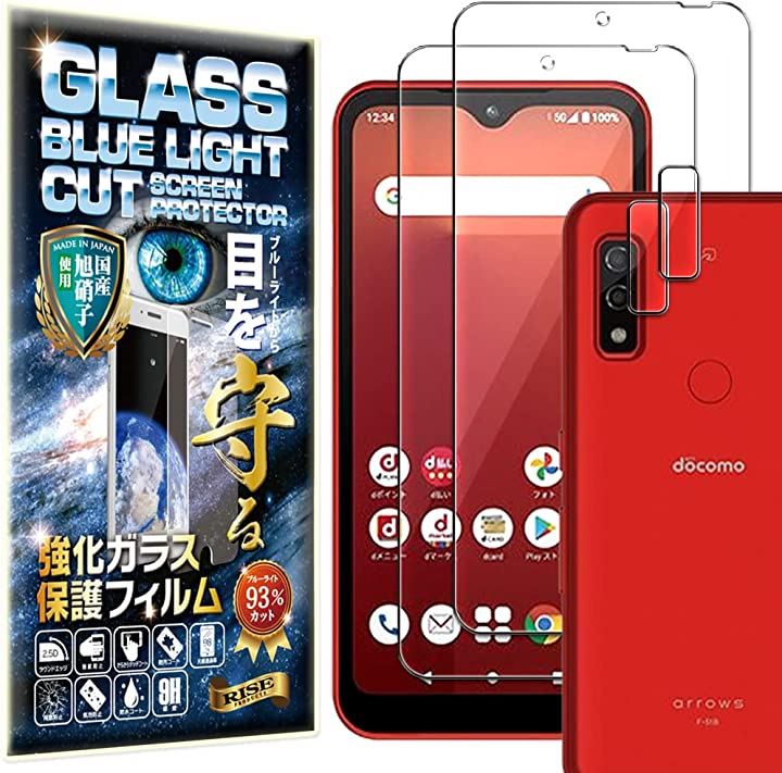 2枚+2枚 RISE ガラスフィルム カメラ レンズ フィルム ブルーライトカット 93% arrows We F-51B 用 保護フィルム |