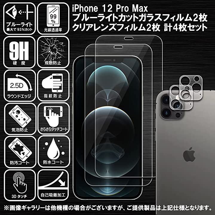 2枚+2枚 RISE ガラスフィルム カメラ レンズ iPhone 12 Pro Max 用 保護フィルム