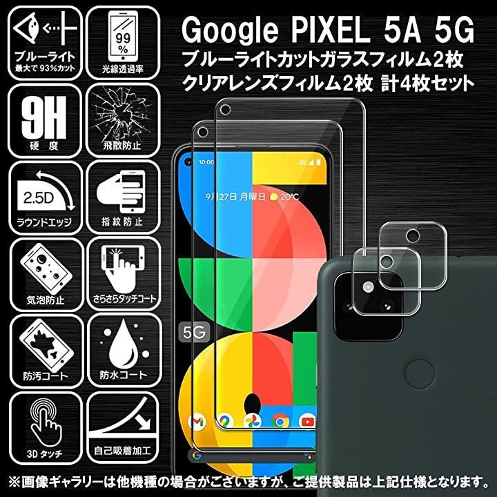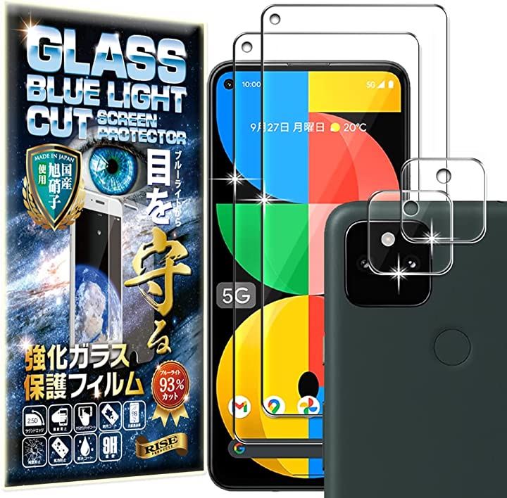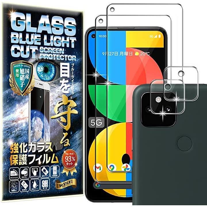 ブルーライトカット 93%2枚+2枚 RISE ガラスフィルム カメラ レンズ Google PIXEL 5A 5G 用 保護フィルム