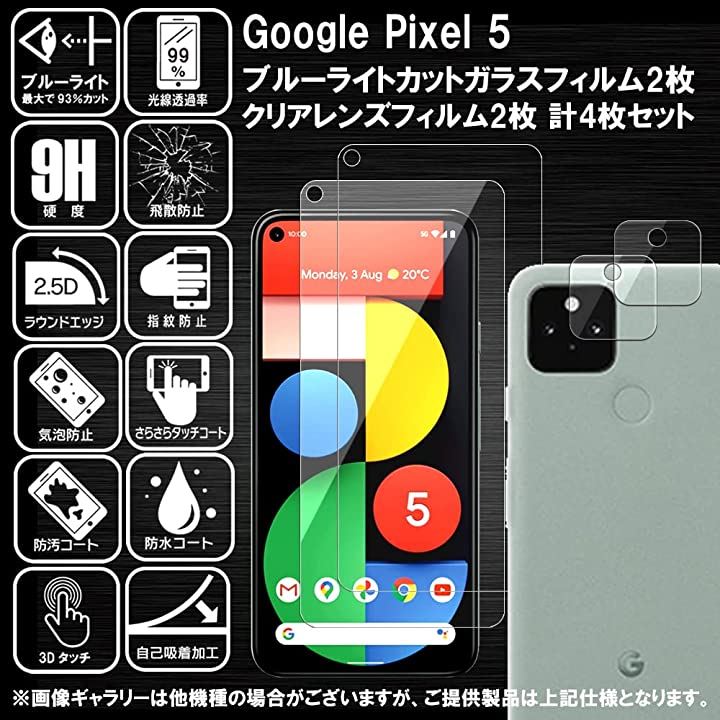 2枚+2枚 RISE ガラスフィルム カメラ レンズ Google Pixel5 用 保護フィルム