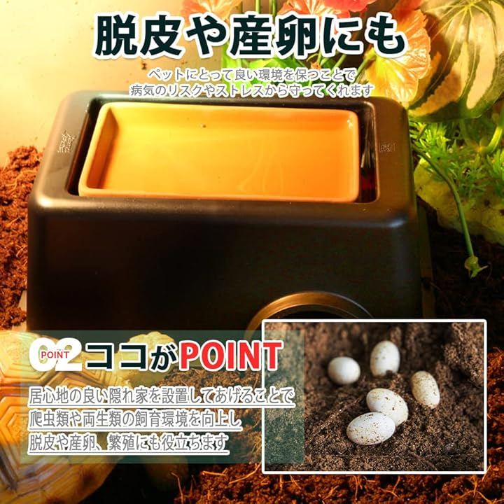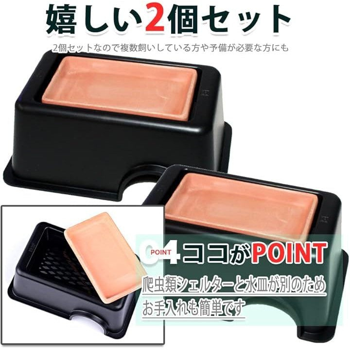 爬虫類用 シェルター ウェットシェルター 隠れ家 洞窟 穴 両生類 飼育 保湿 ハイドロボックス 陶器皿 2個セット