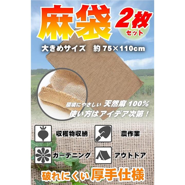麻袋 厚手 2枚セット 約75x110cm 南京袋 ドンゴロス 大きいサイズ