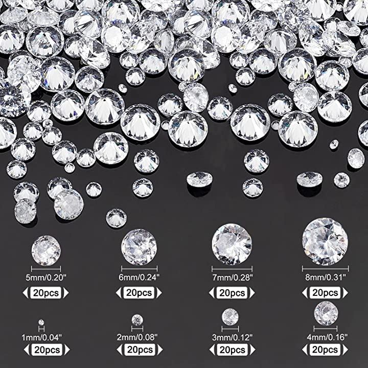 ラインストーン クリア 160個 8サイズ キュービックジルコニアストーン 1/2/3/4/5/6/7/8mm
