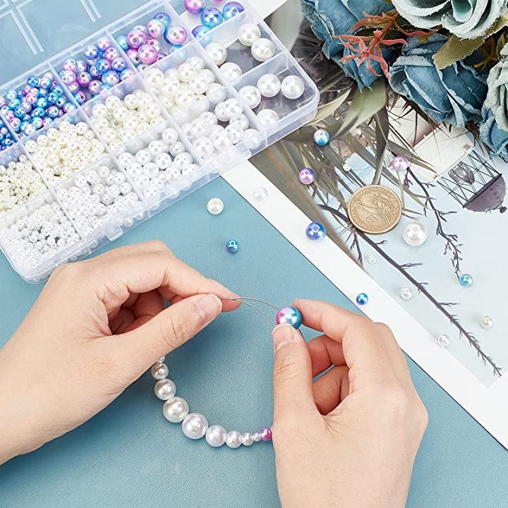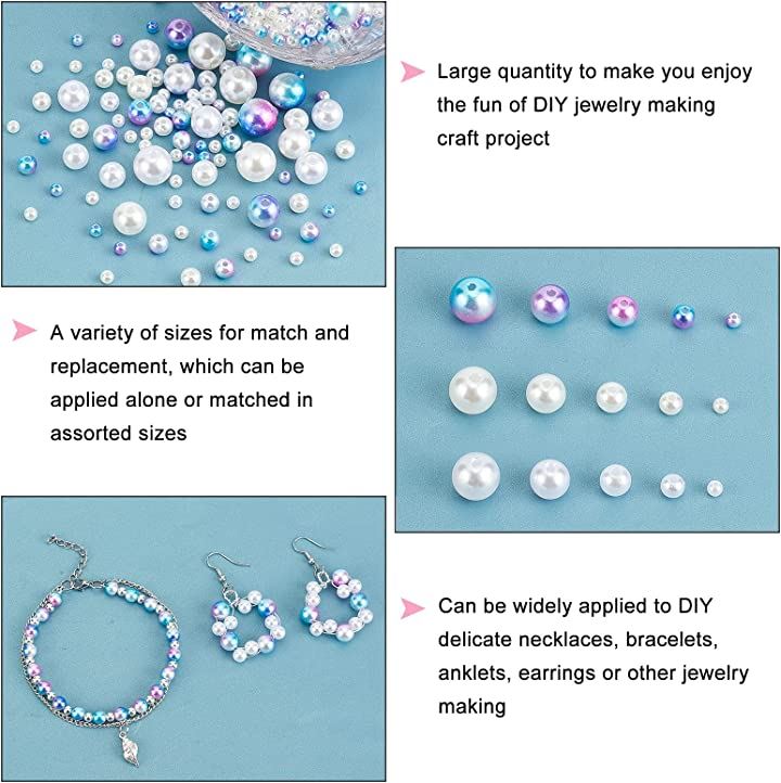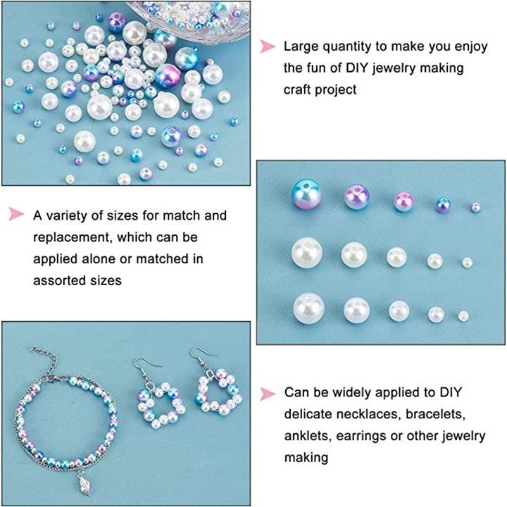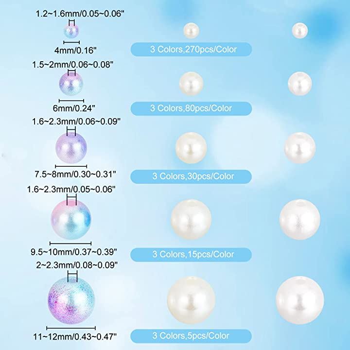 パールビーズ 1200個 15種 丸玉 マーメイドカラー アクセサリーパーツ 穴付き 4/6/8/10/12mm