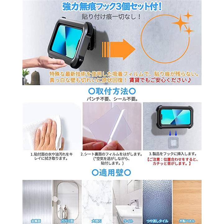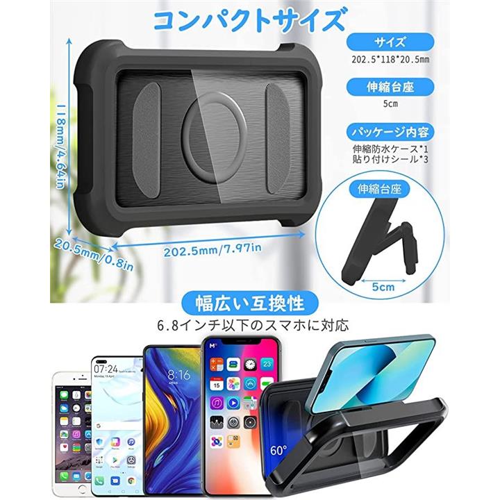「互換品」「480°回転&卓上式・壁掛け式・伸縮式」FAMIDUO スマホ スタンド 防水ケース フォンケース フック3枚付 |