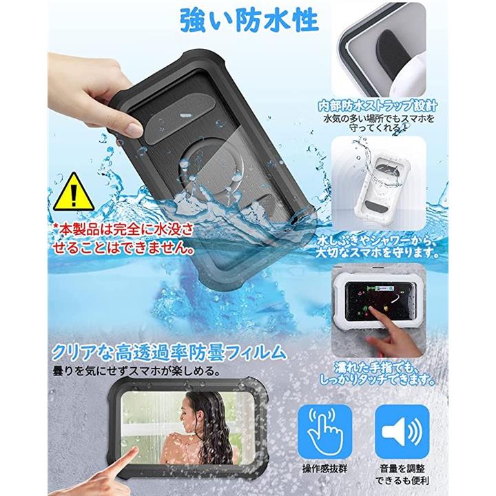 強い防水性&高透過率防曇フィルム内部防水ストラップ設計で、お風呂でゆっくりしたい時、曇り・水しぶきや水滴から大切なスマホを守りながら、スマホを楽しむことができます。