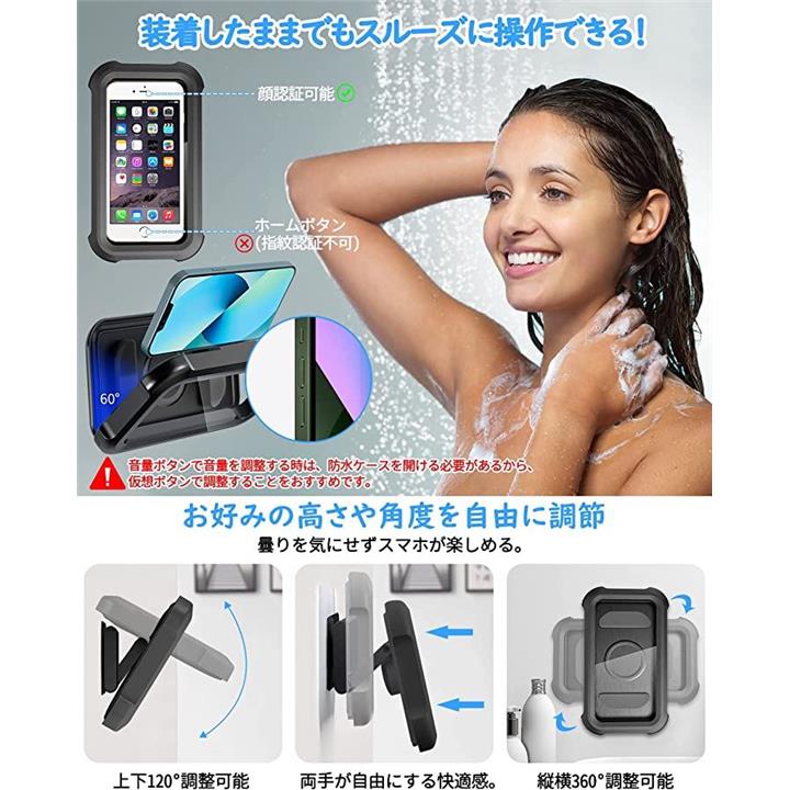 ・「480°回転・好きな角度に自由に調整」480°回転式防水ケースは、もともと動画視聴、Tik-Tok、通話、音楽再生など、あらゆるシーンでスマホを自由に使えるように設計されており、480°回転式の角度はスマホを取り出して調整しなくてもお客様の最適な角度に適応します。