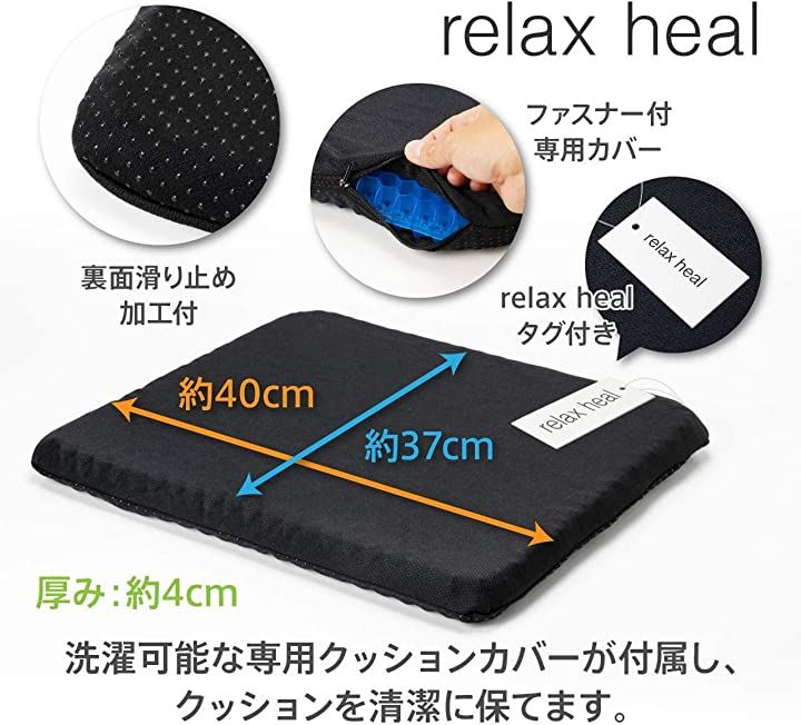 relaxheal ゲルクッション 椅子 ジェルクッション 車 座布団 40x37cm