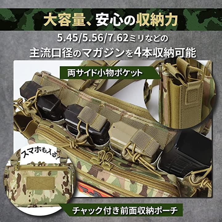 ・「充実した収納ポケット」マガジン収納ポケットには、5.45/5.56/7.62といった主流口径のマガジンを収納可能です。