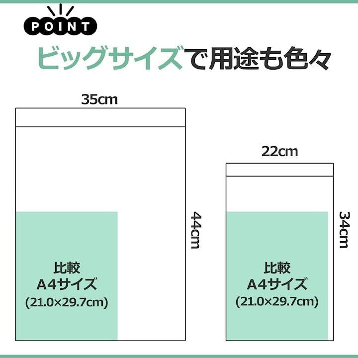 Tシャツやバッグなどが入る35x44センチの2サイズ、大容量の100枚入り。