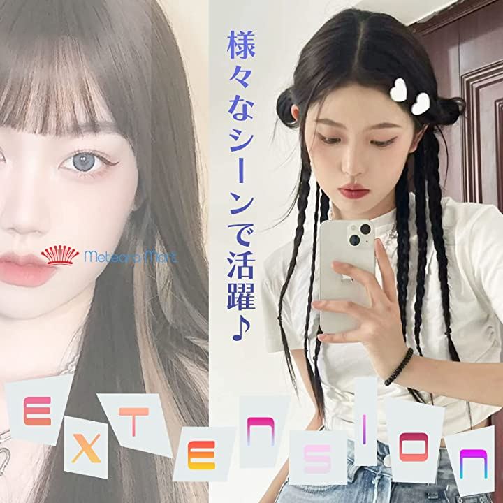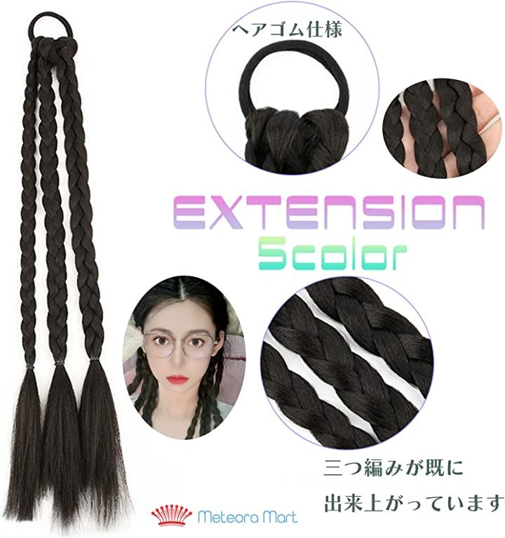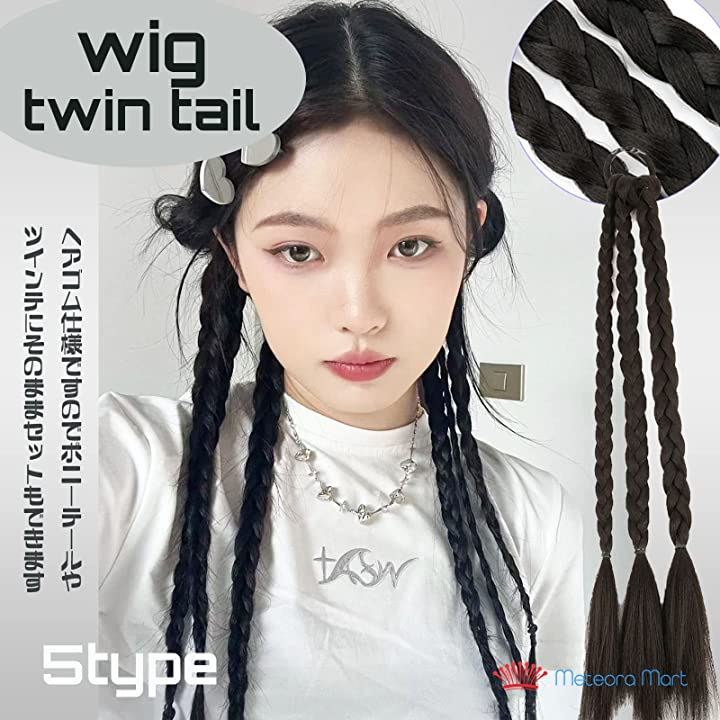 メテオラマート 三つ編み ツインテ ヘア エクステ ウィッグ ツインテール 付け 髪 毛