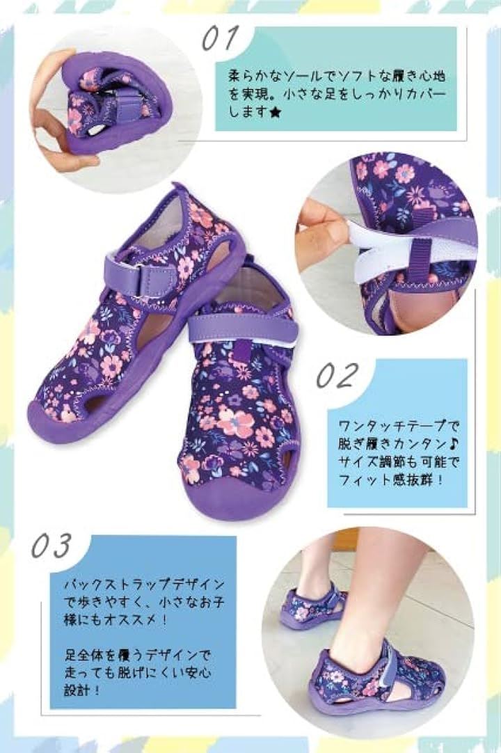 マリンシューズ キッズ サンダル 女の子 花柄 水陸両用 軽量