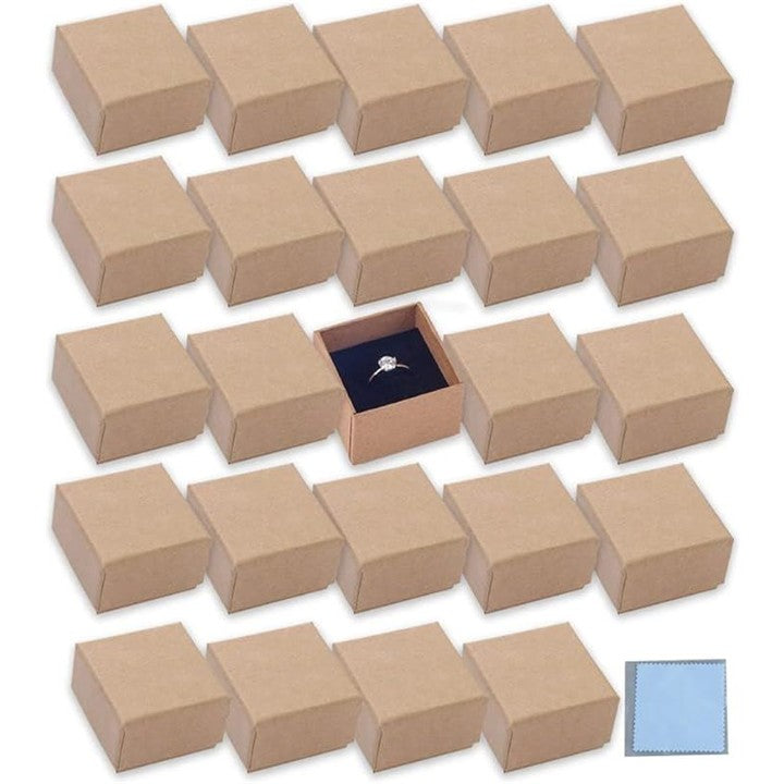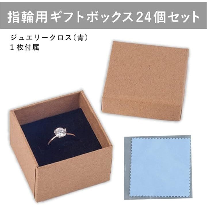 アウプル 指輪 ギフト ボックス 正方形 5x5x3cm 24個セット クリーニングクロス 1枚付き リング アクセサリー ジュエリー 収納 ラッピング 箱 無地 クラフト紙