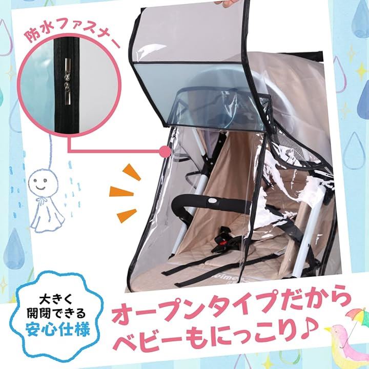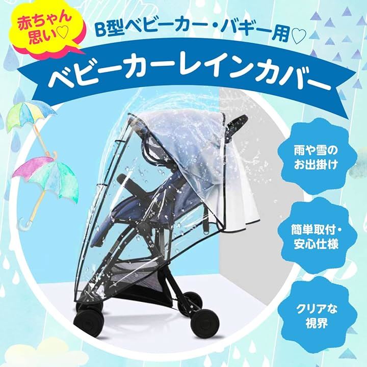 互換品ベビーカーレインカバー ベビーカーカバー バギーカバー 背面式 B型 汎用 フロントオープン お出掛け 透明