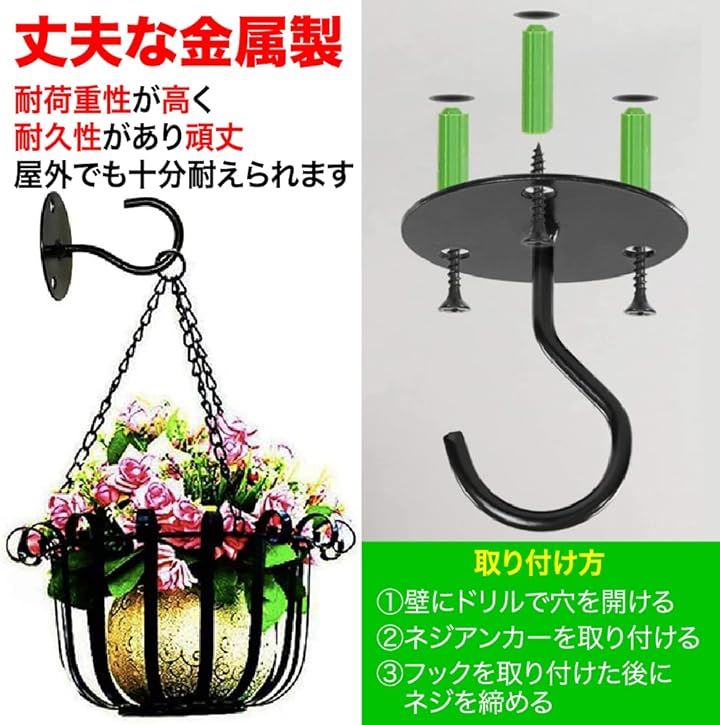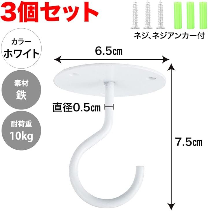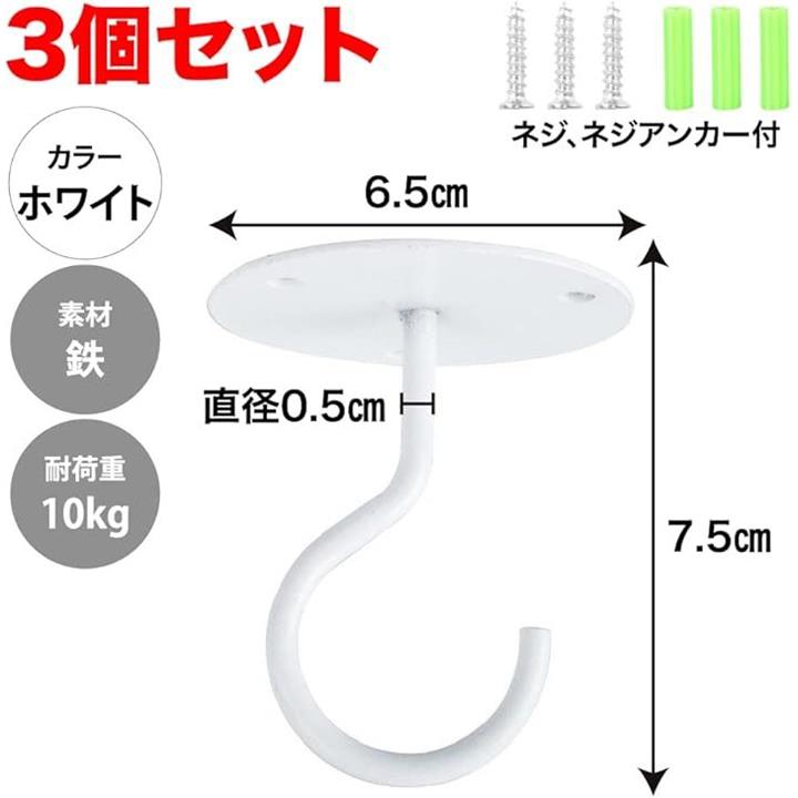 天井フック 吊り下げ 固定 ネジフック ハンガーフック ハンギングプランター 壁 3個セット