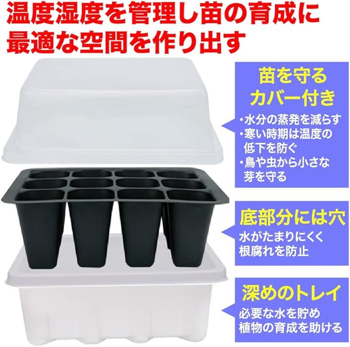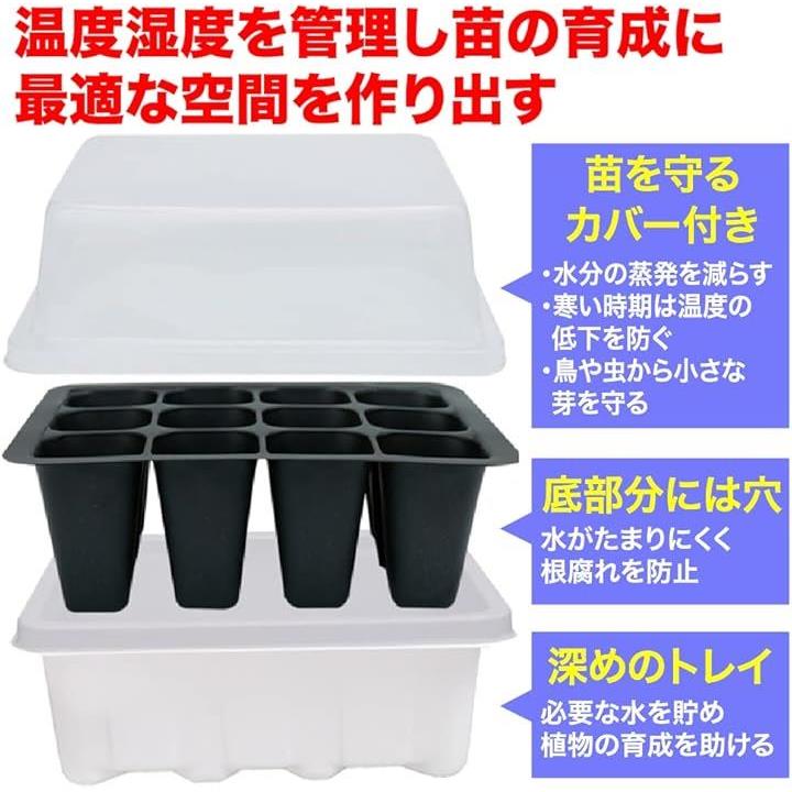 育苗ポット 育苗トレイ 種まき 家庭菜園 園芸用品 育苗箱 植物 発芽 プランター 12穴 3個セット