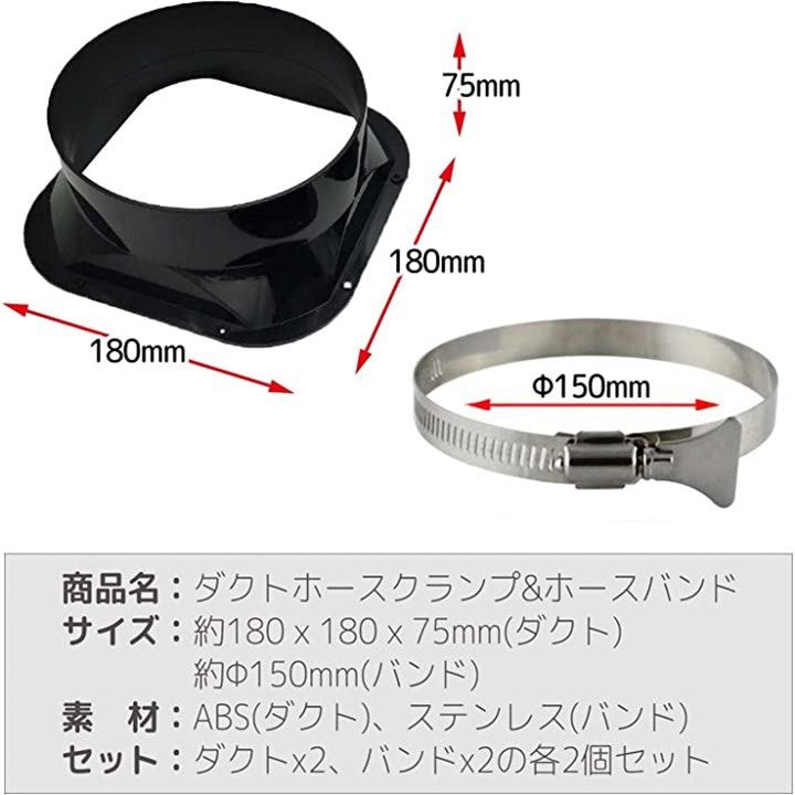 ダクト ホースクランプ 四角 換気 ステンレスホースバンド ダクトコネクター 150mm