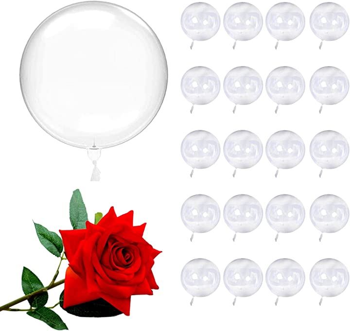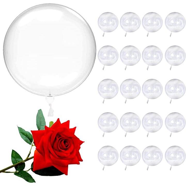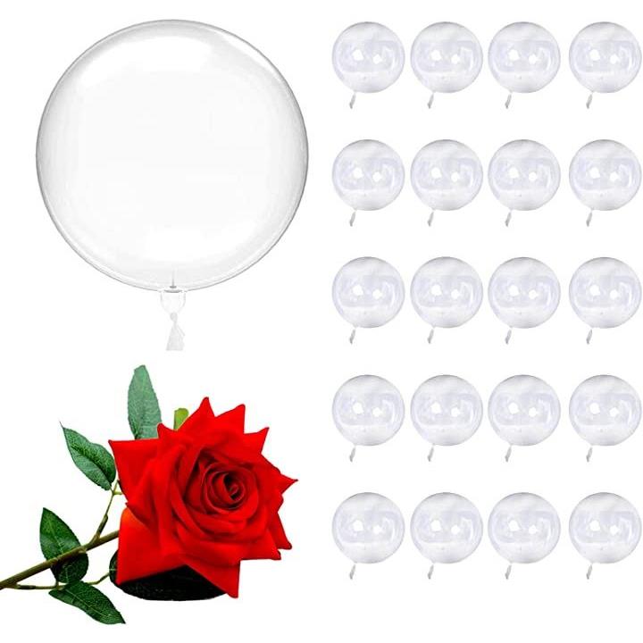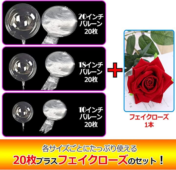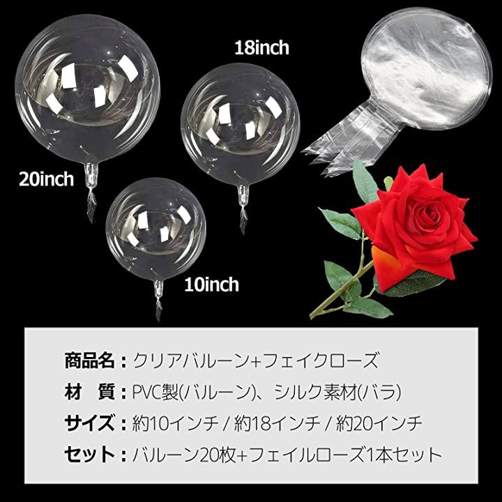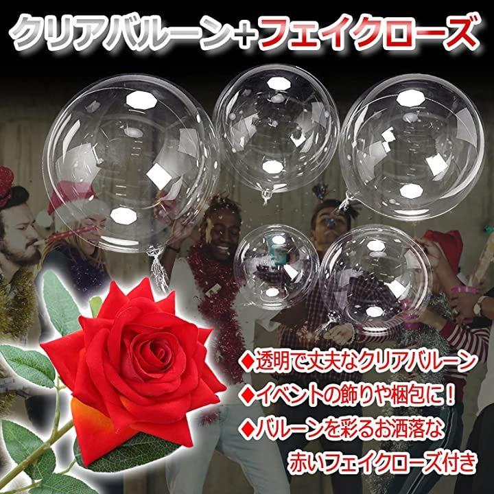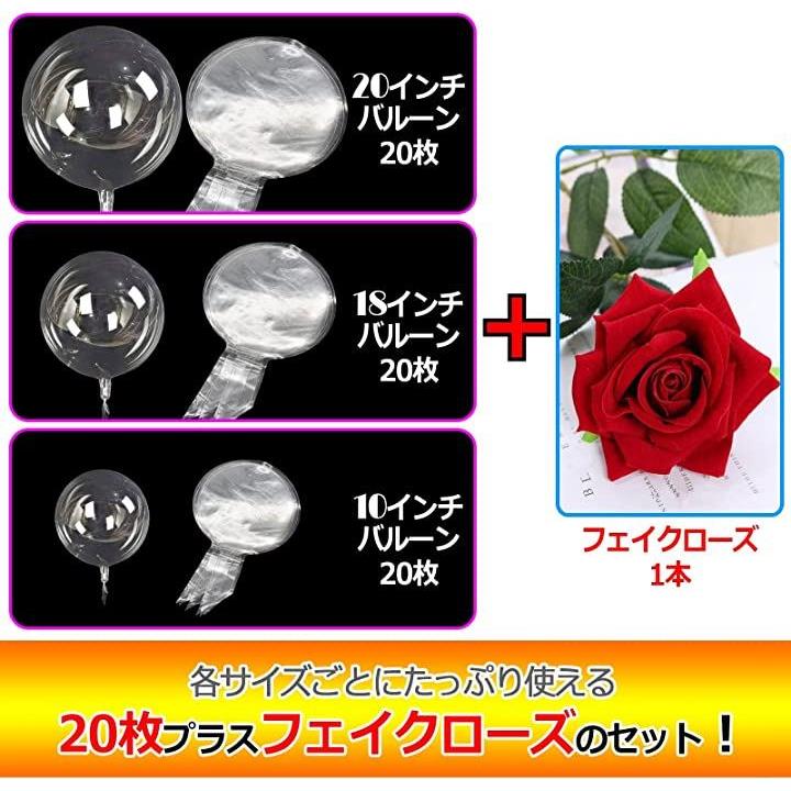 透明な風船 クリアバルーン バラの花付き 透明風船20個 バラの花1本 セット