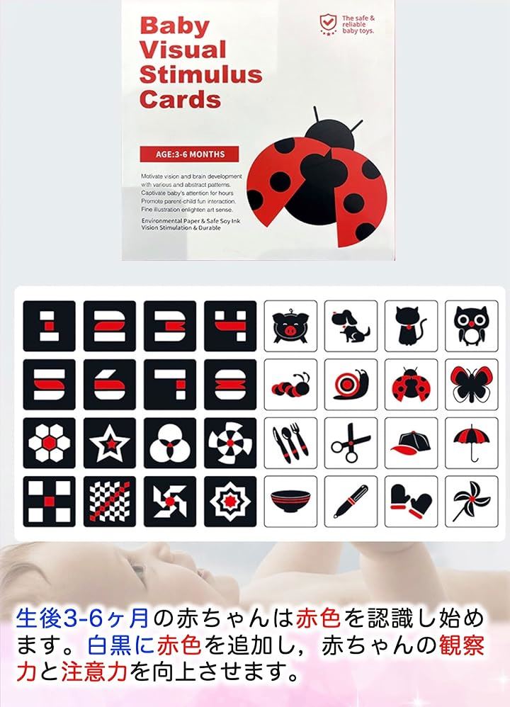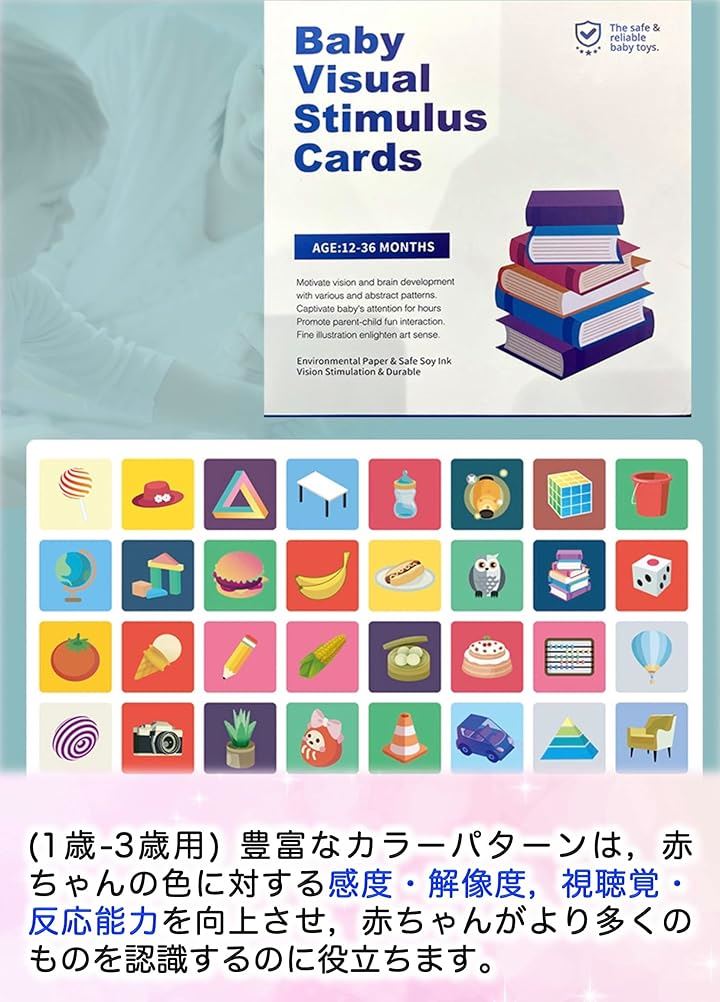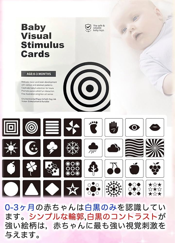 ベビーフラッシュカード 4セット 集中力カード 両面64枚 128ページ 0歳児向け 視覚刺激 新生児 幼児教育 右脳活性化 おもちゃ ギフト 誕生祝い