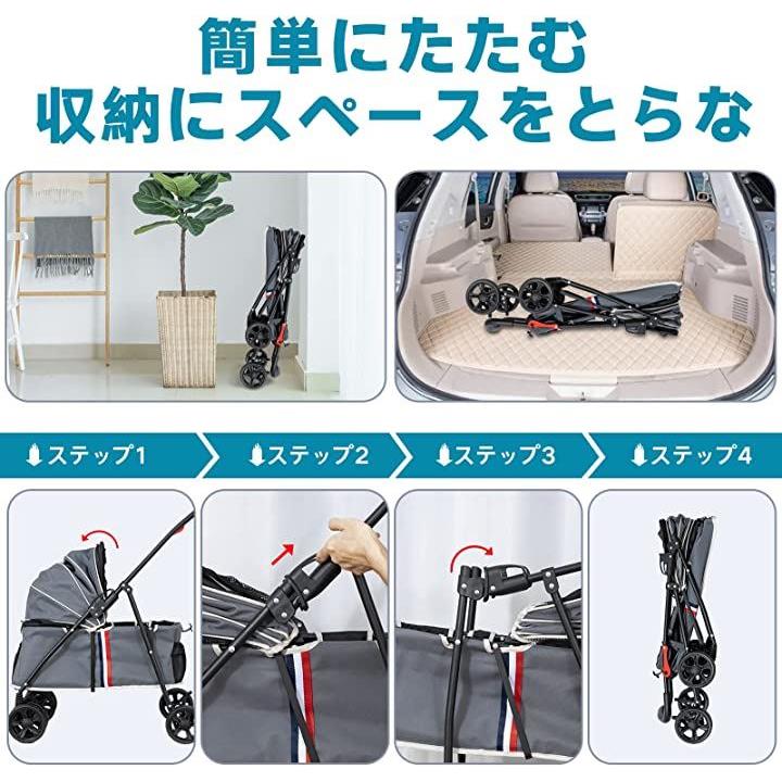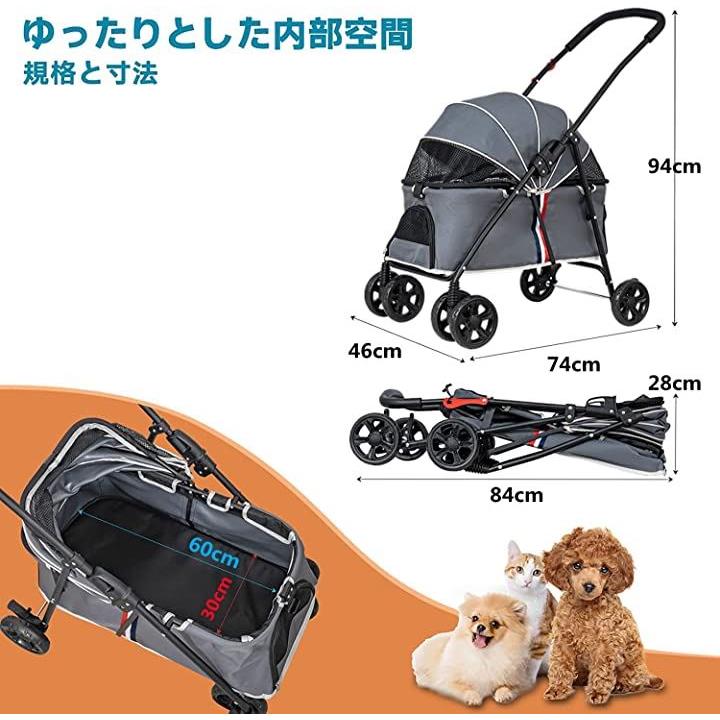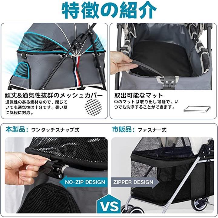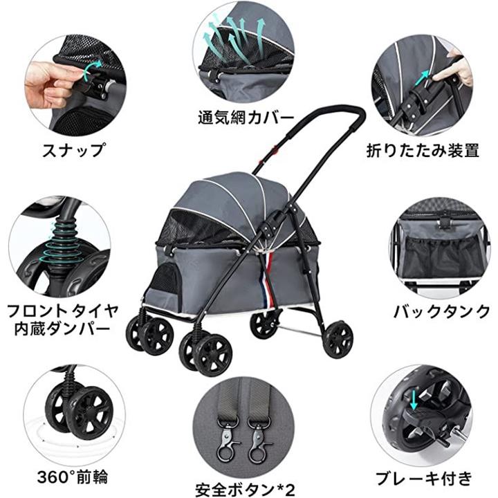 ペットカート 軽量 犬用ベビーカー 猫 バギー 猫犬兼用前輪360°回転 後輪ブレーキ付 ポーチ付き 耐荷重20Kg マリンブルー