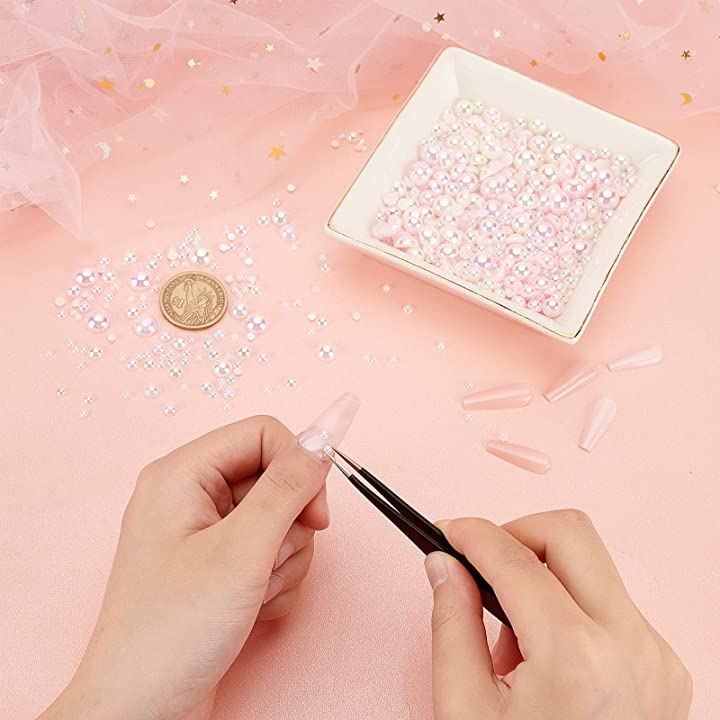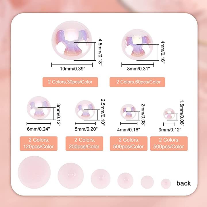 半円パール 約2800粒 桜の色 パールスカボション 半丸 ネイルパーツ 3/4/5/6/8/10mm