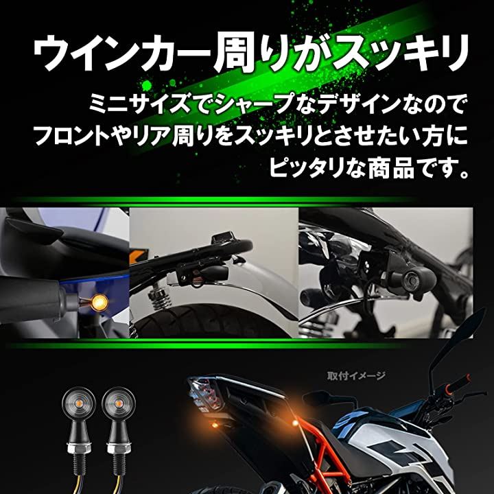 ・「商品概要」スタイリッシュな砲弾型デザインで様々な車種のバイクに合わせやすい汎用LEDミニウインカー。