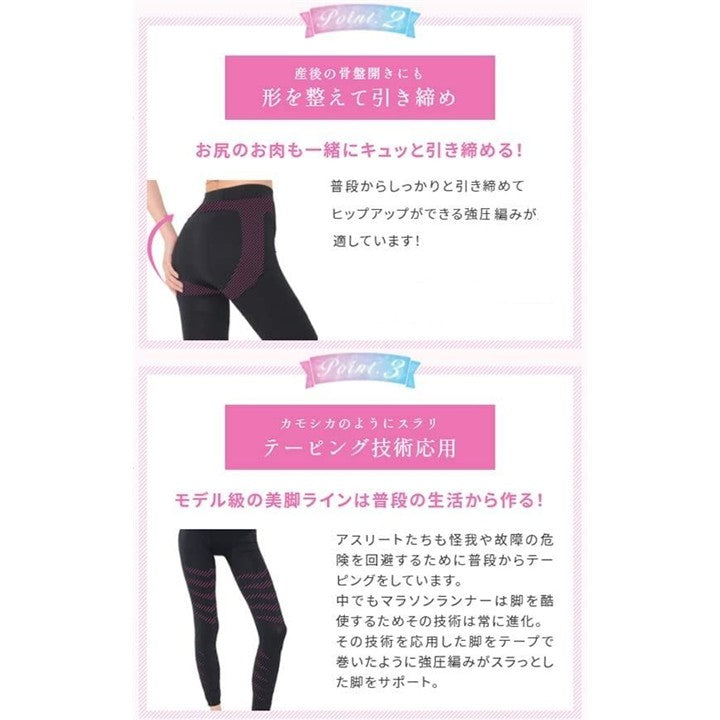 強圧編みのテーピングシェイプによりおなか・お尻・太もも・ふくらはぎを引き締める。