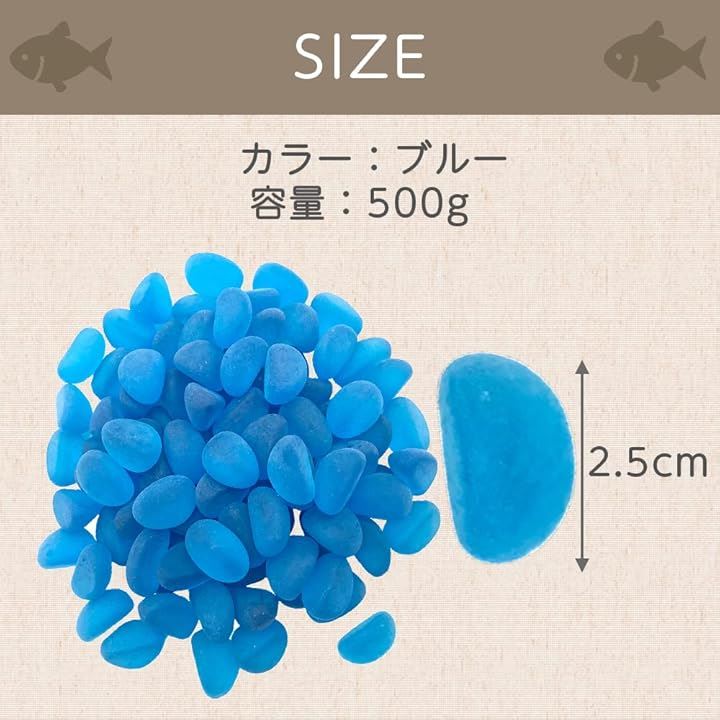AllBright 彩り石 水槽用飾り石 アクアリウム 観賞 魚 装飾 石ガラス 底砂 砂利 水族用品 約500g ブルー
